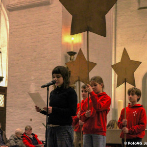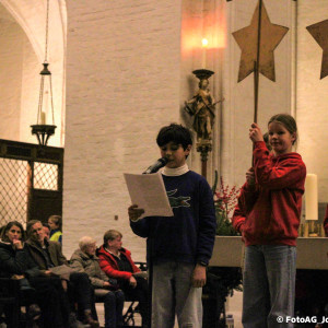 Außerdem gab es fünf mutige Schüler:innen, die Texte vor dem Mikrofon vorgelesen haben. Theodor Fritsche aus der Q1, Anna Maiboroda und Antonia Scheel aus der 10. Klasse, Kira Jessen aus der 7. mit einem selbstgeschriebenen Text und Jordi Schmiele aus der 6. Klasse trauten sich vor die Menschenmenge. Das war wirklich aufregend, aber auch ein sehr besonderes Gefühl, vor so vielen Menschen vorzulesen. Vor allem durch den auffallenden Hall in der Kirche wurde den Stimmen ein bewundernswerter Klang gegeben. Die Weihnachtsstimmung wurde dadurch dann voll und ganz gegeben, denn es ging um Bischof Nikolaus, der den Menschen Liebe spendete und sich vor allem um Kinder und Arme kümmerte.
