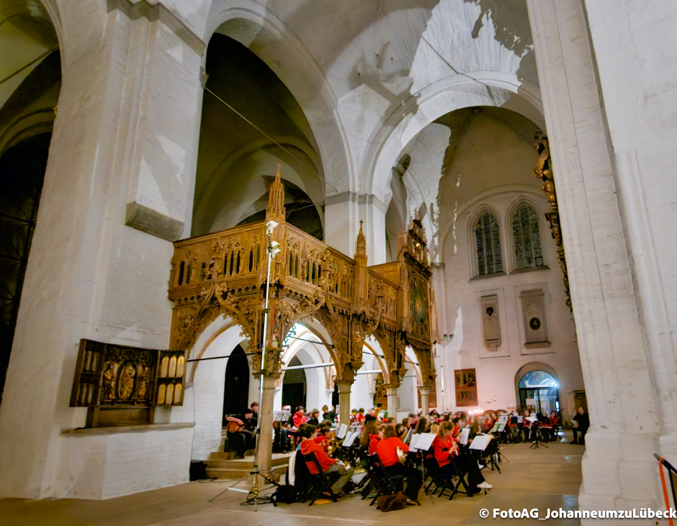 Doch auch dieses Jahr konnten wir einen Lichtblick in der Weihnachtszeit erleben: das Adventskonzert im Lübecker Dom am 5. Dezember. Es wurden wundervolle weihnachtliche Lieder von insgesamt neun Ensembles unserer Schule gespielt und gesungen.