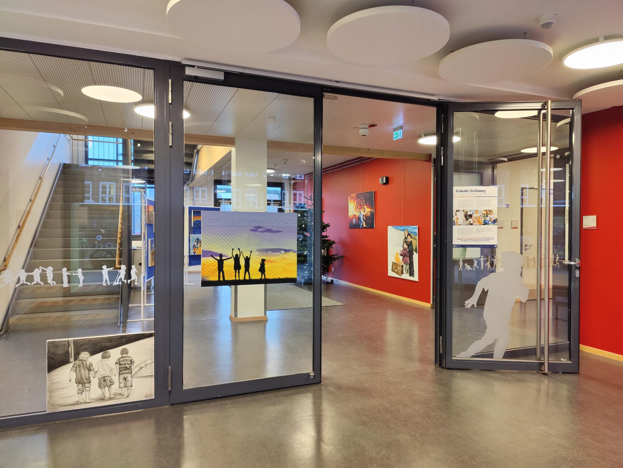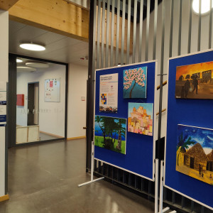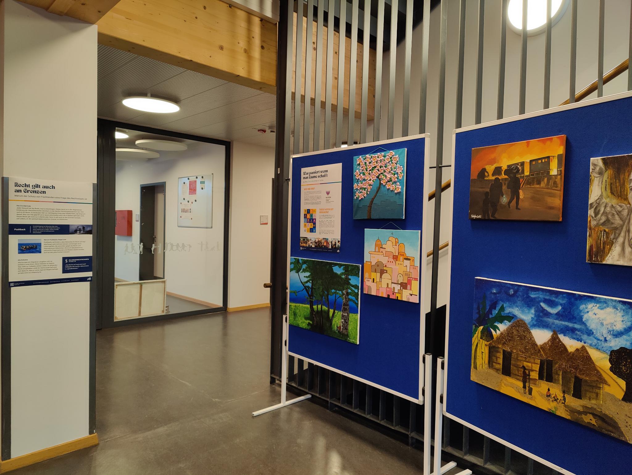 Im Eingangsbereich der Hüxschule ist zur Zeit die Ausstellung „Gemalte Hoffnung“ mit Bildern von geflüchteten Jugendlichen und jungen Künstler:innen zu sehen. Die Bilder sind im Paréa Community Center entstanden. Die Künstler:innen sind zwischen 10 und 18 Jahren alt. Sie kommen aus Afghanistan, Syrien, Somalia und anderen Ländern, mussten ihre Heimat verlassen und warteten für Monate oder Jahre auf die Bearbeitung ihrer Anträge auf Lesbos. Die Ausstellung liefert keine fertigen Antworten. Sie stellt Fragen: Wie fühlt es sich an, als junger Mensch auf der Flucht zu sein? Was bedeutet es, jahrelang zu warten? Und was können wir tun?