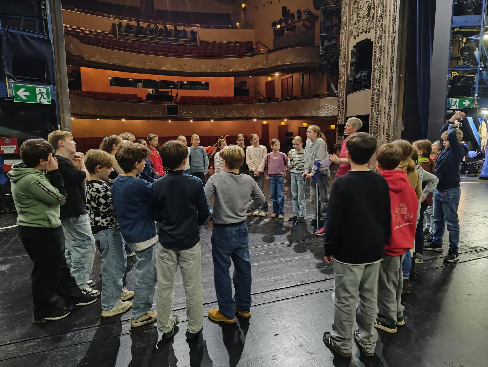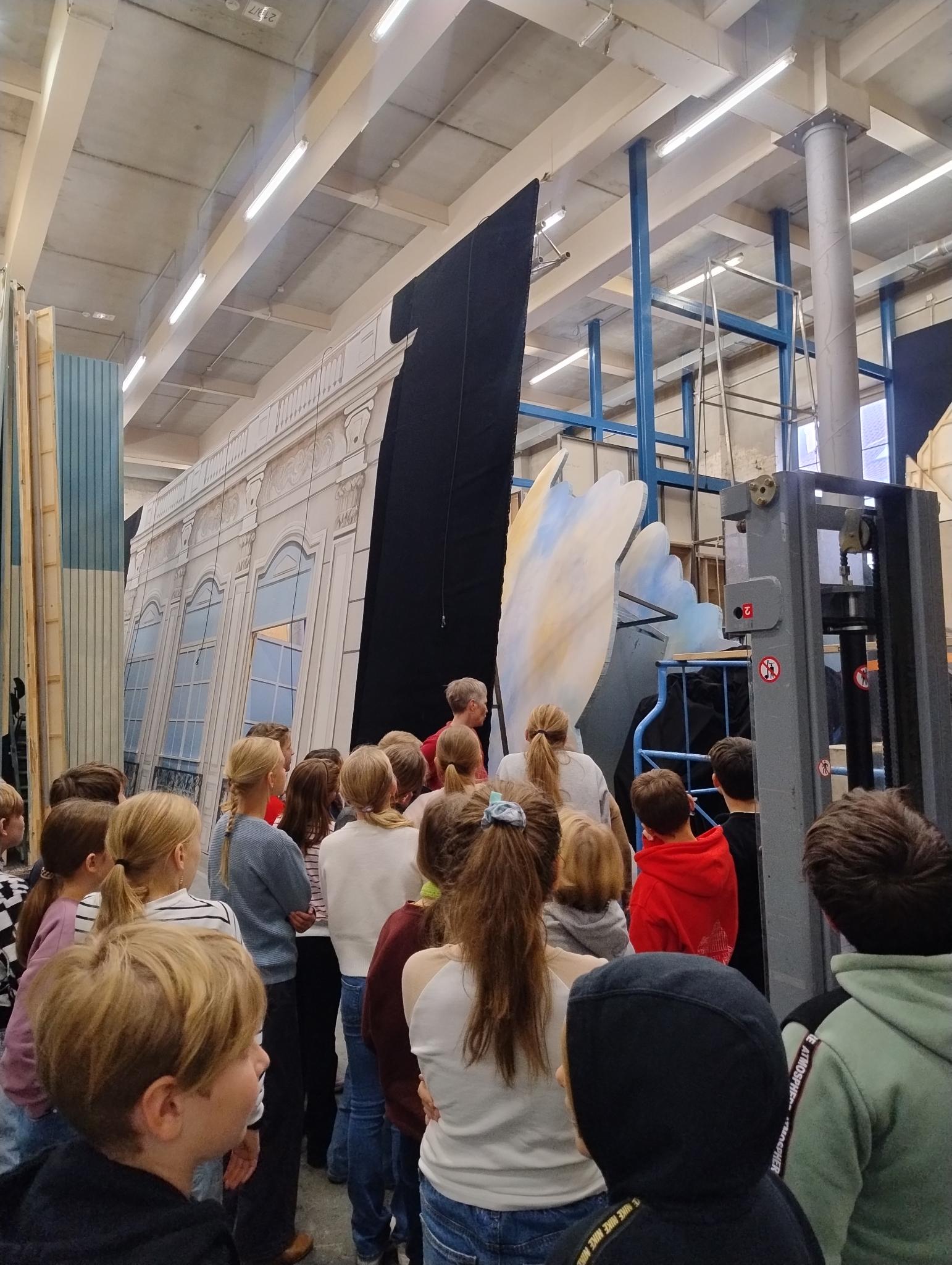 Besonders aufregend war, dass wir auf der Bühne stehen durften und uns die komplizierte Technik erklärt wurde. Hinter dem Vorhang ist es so viel größer, als man denkt!