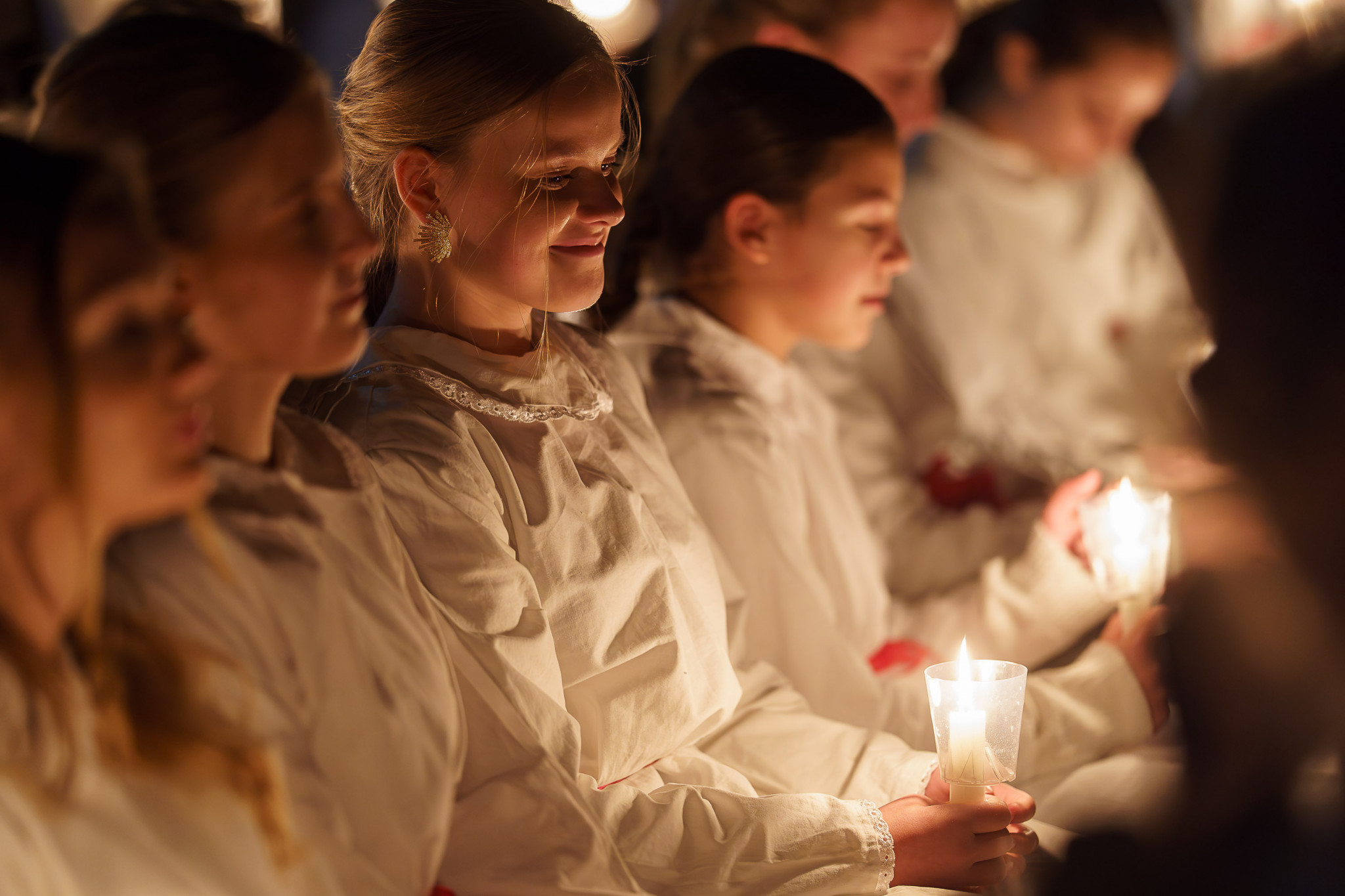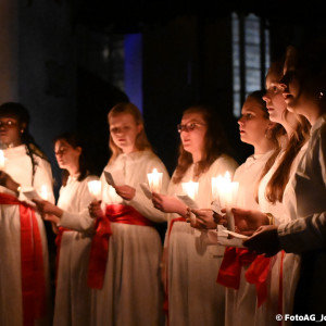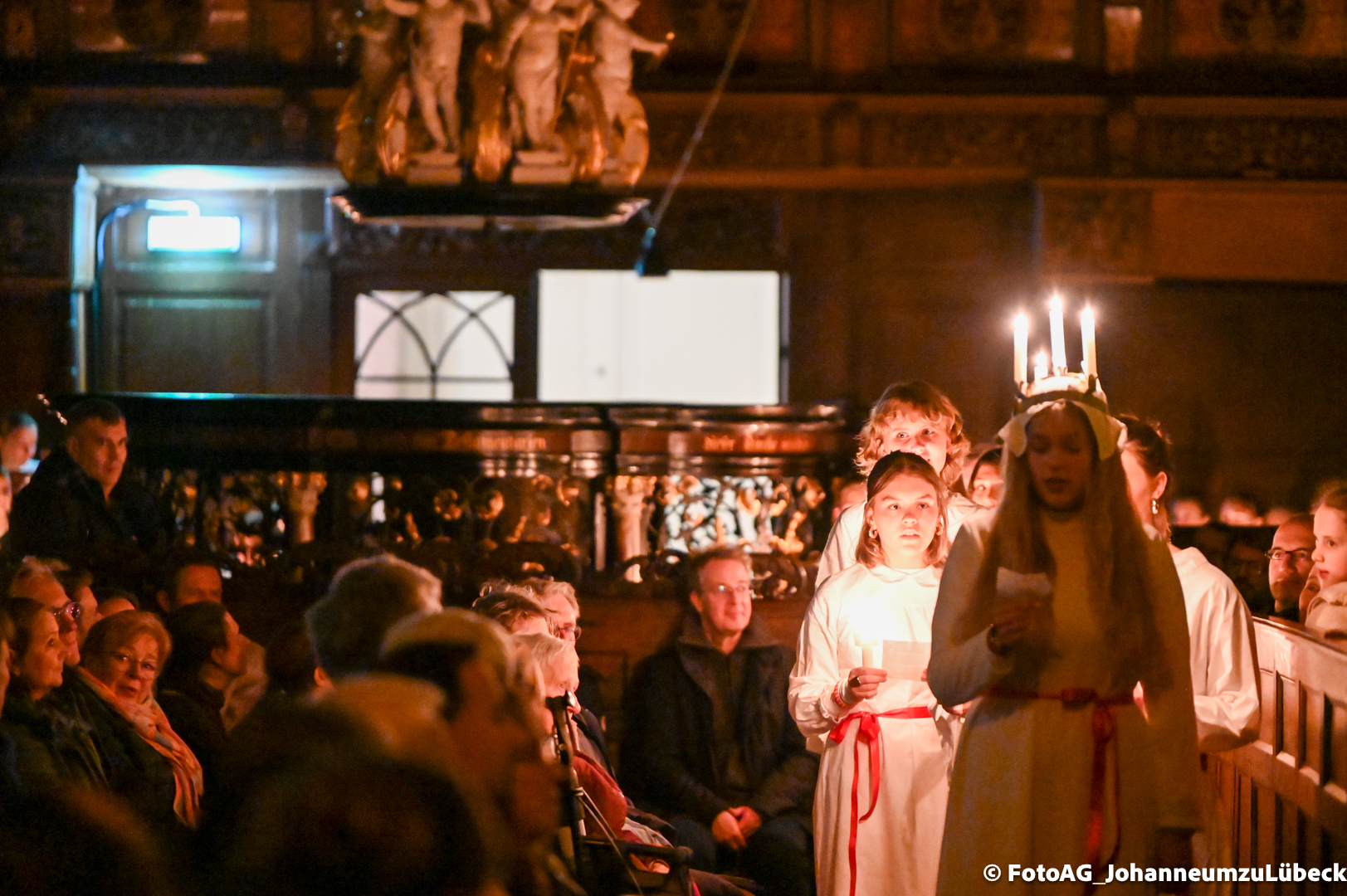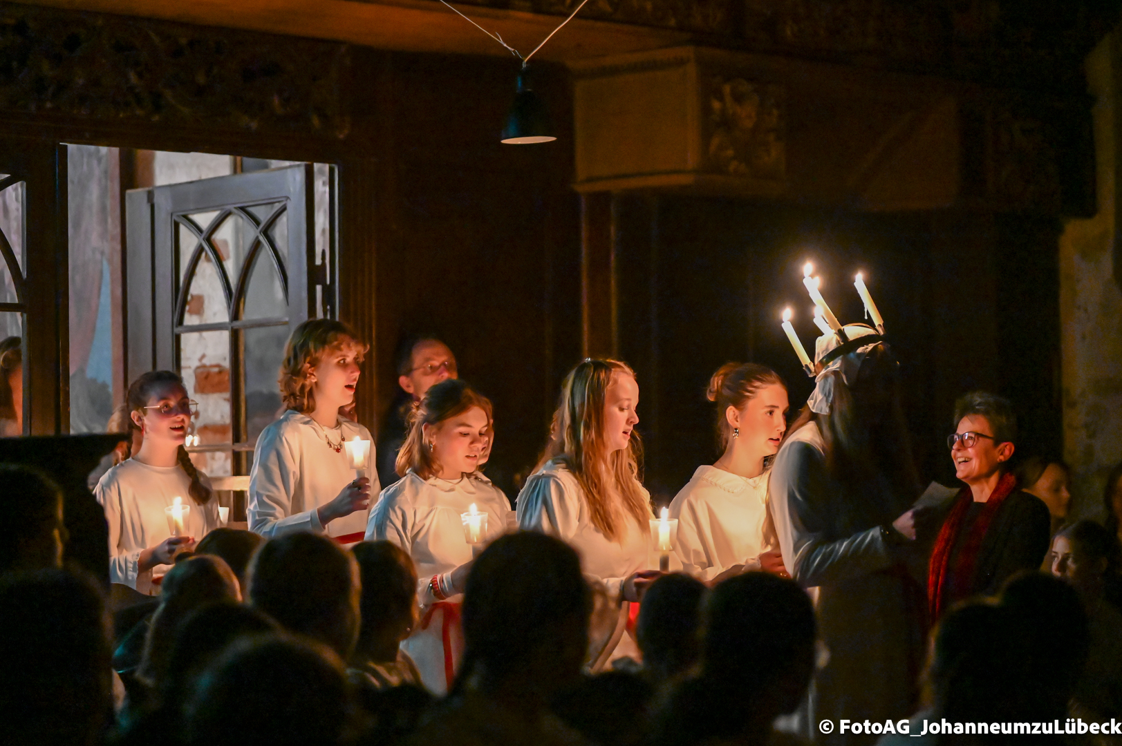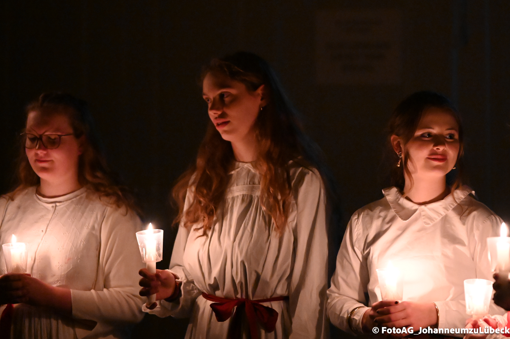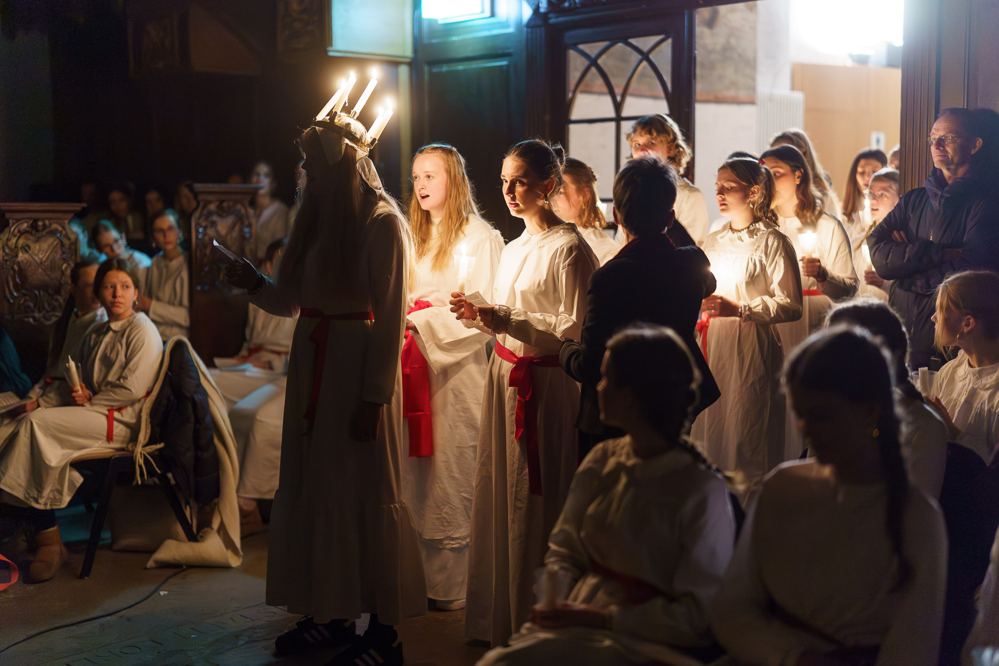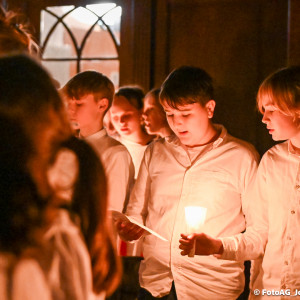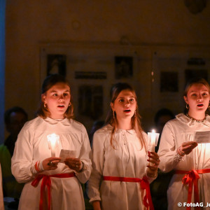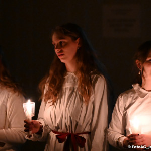 Zweimal füllte sich der Kirche an diesem Tag bis auf den letzten Platz, das Licht ging aus und es wurde still in der Kirche. Nach der von zwei Kindern solistisch gesungenen Ankündigung der Lichterkönigin kam die Lucia herein und brachte das Kerzenlicht, das dann in allen Chören verbreitet wurde. Im Konzert wurden Lieder aus verschiedenen Ländern gesungen. Einige auch aus Schweden, wo das Lucia-Fest entstanden ist. Mehrere Schüler:innen beeindruckten durch solistische Vorträge.