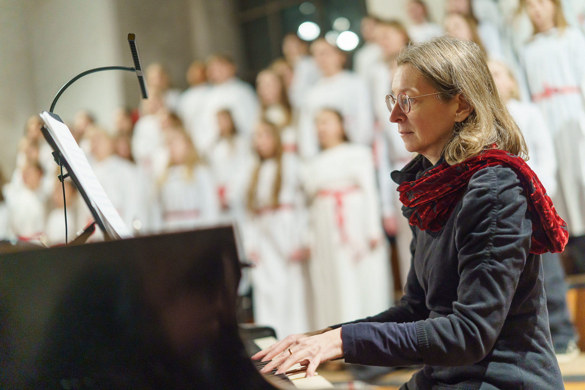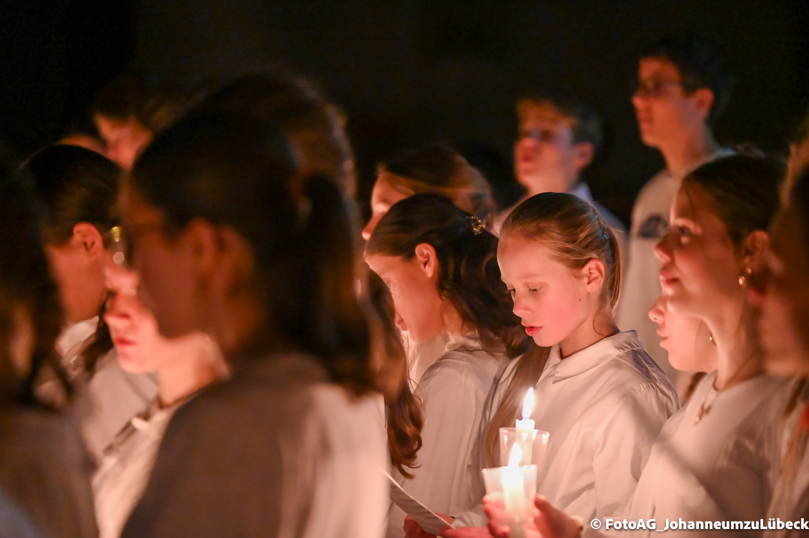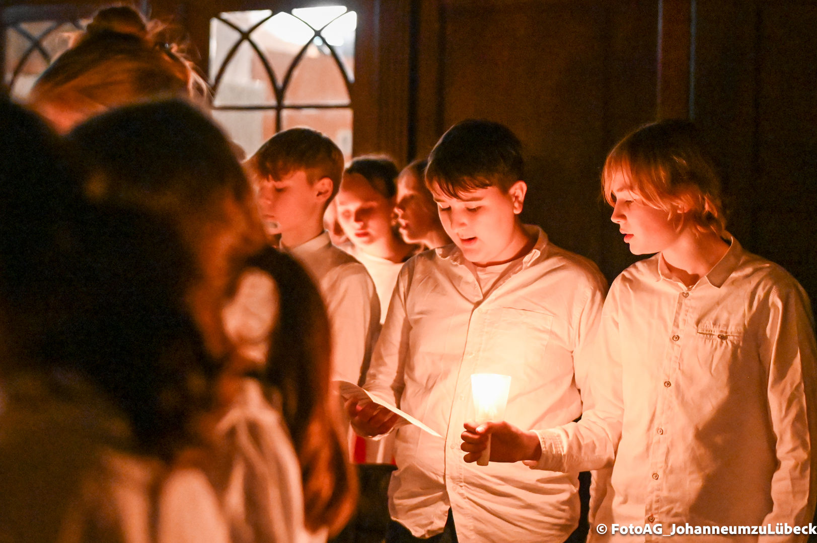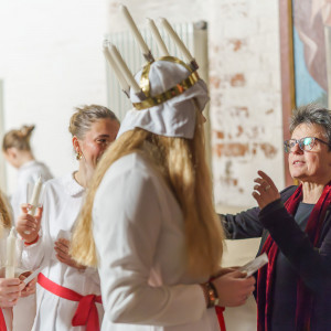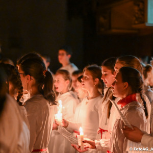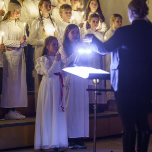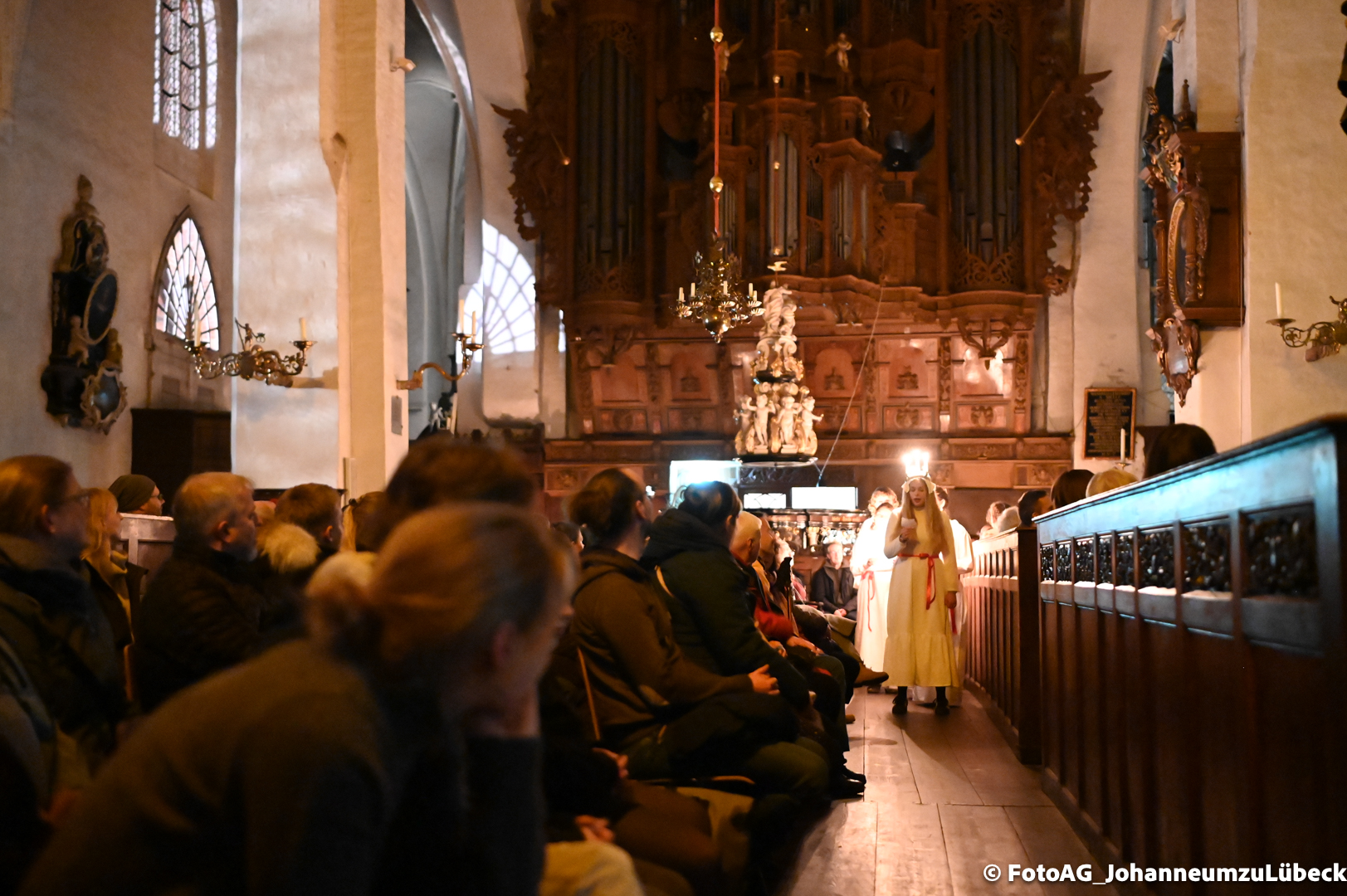 Zweimal füllte sich der Kirche an diesem Tag bis auf den letzten Platz, das Licht ging aus und es wurde still in der Kirche. Nach der von zwei Kindern solistisch gesungenen Ankündigung der Lichterkönigin kam die Lucia herein und brachte das Kerzenlicht, das dann in allen Chören verbreitet wurde. Im Konzert wurden Lieder aus verschiedenen Ländern gesungen. Einige auch aus Schweden, wo das Lucia-Fest entstanden ist. Mehrere Schüler:innen beeindruckten durch solistische Vorträge.