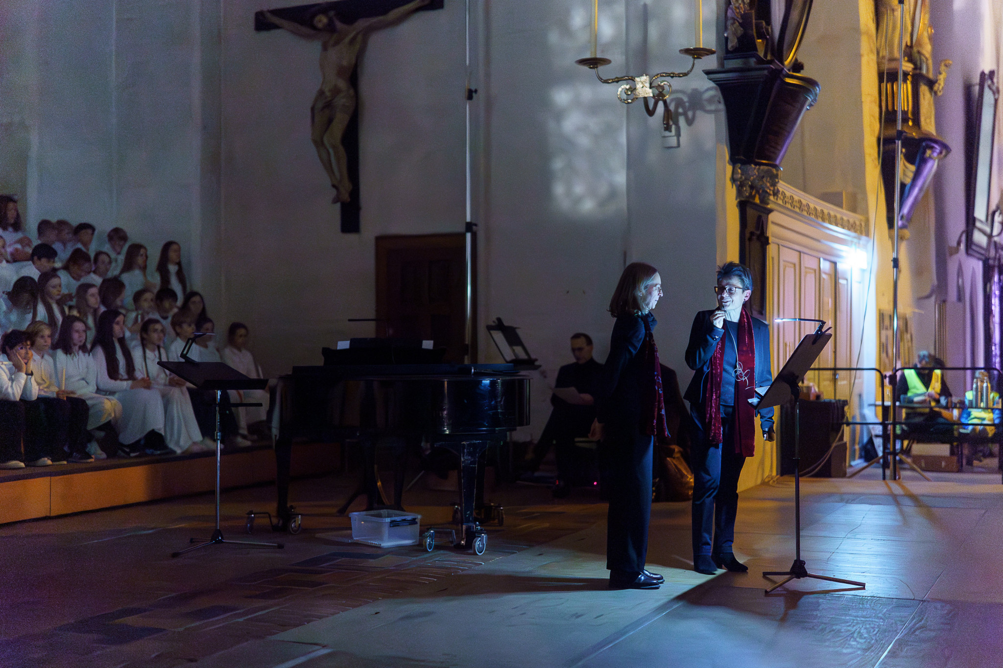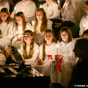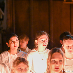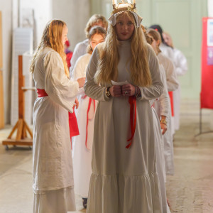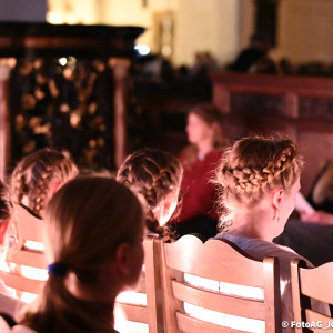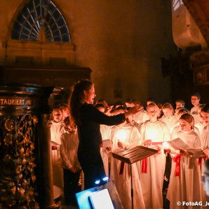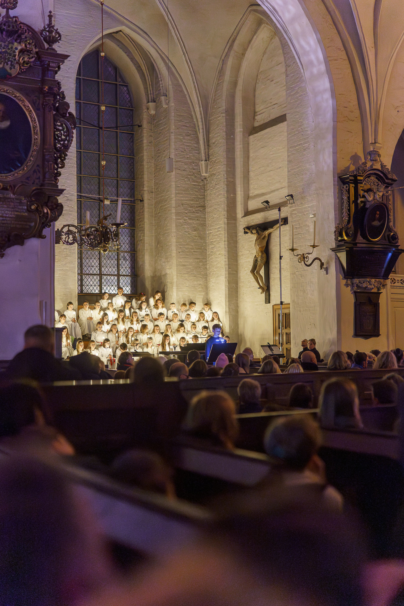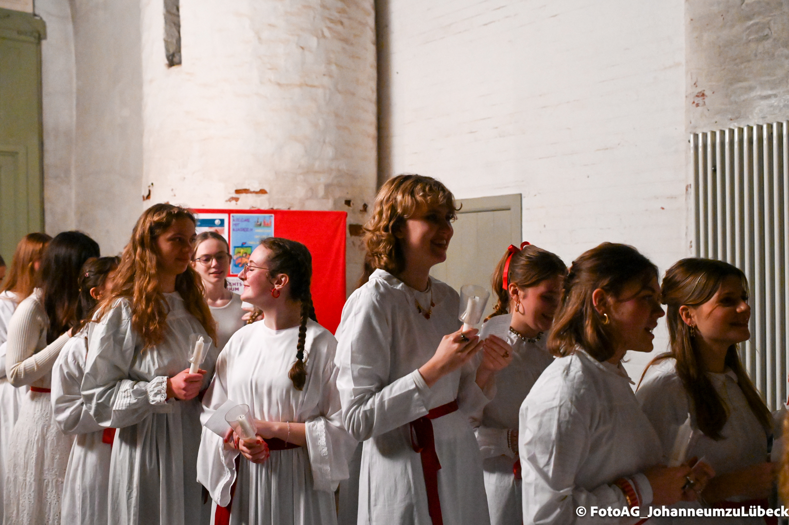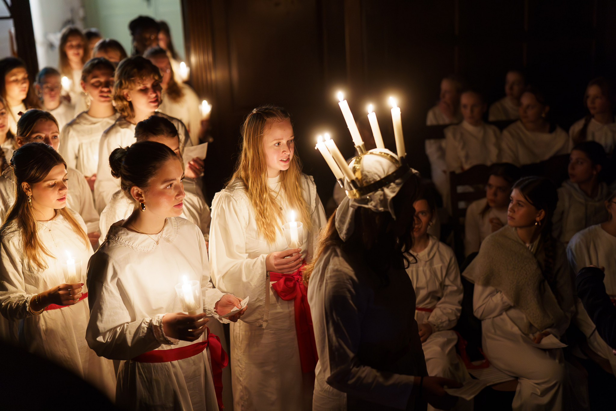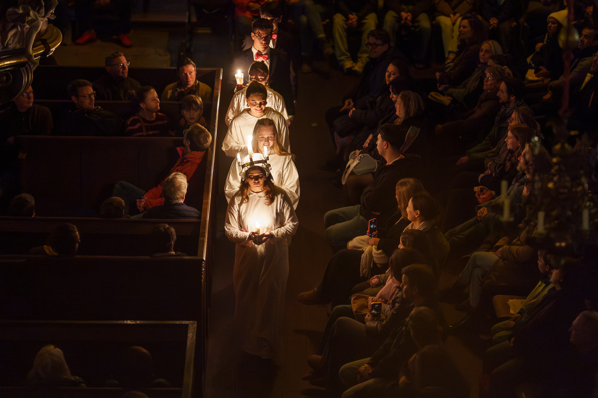 Zweimal füllte sich der Kirche an diesem Tag bis auf den letzten Platz, das Licht ging aus und es wurde still in der Kirche. Nach der von zwei Kindern solistisch gesungenen Ankündigung der Lichterkönigin kam die Lucia herein und brachte das Kerzenlicht, das dann in allen Chören verbreitet wurde. Im Konzert wurden Lieder aus verschiedenen Ländern gesungen. Einige auch aus Schweden, wo das Lucia-Fest entstanden ist. Mehrere Schüler:innen beeindruckten durch solistische Vorträge.