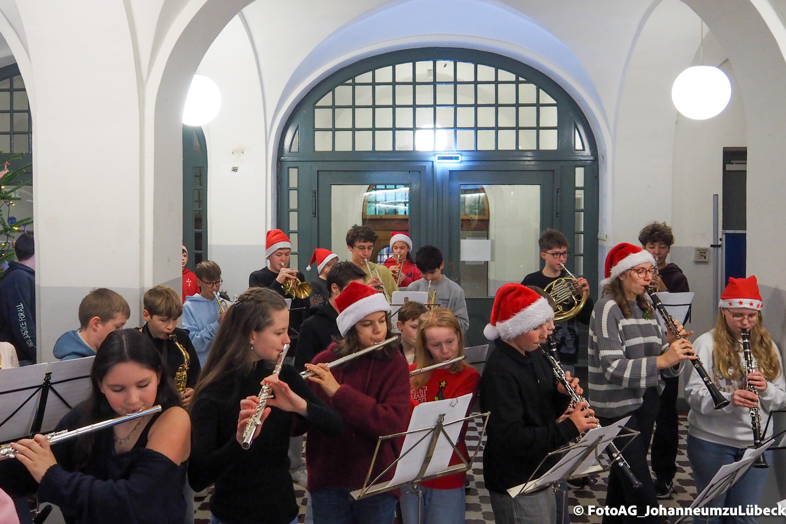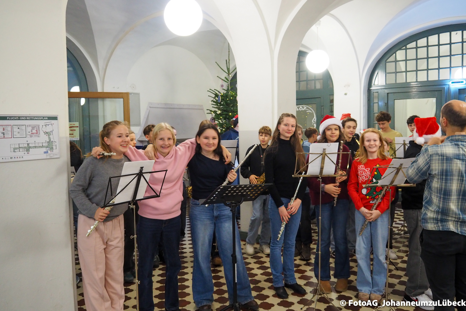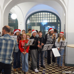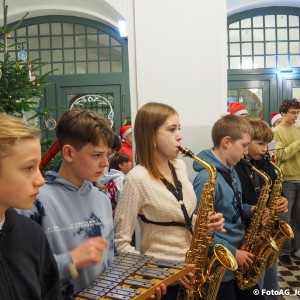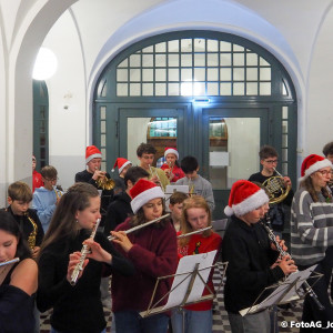 Wie starten am Johanneum die Weihnachtsferien? Natürlich mit Musik! Heute sind nach der 4. Stunde noch einmal alle in die Aula eingeladen, um gemeinsam zuzuhören und zu singen.