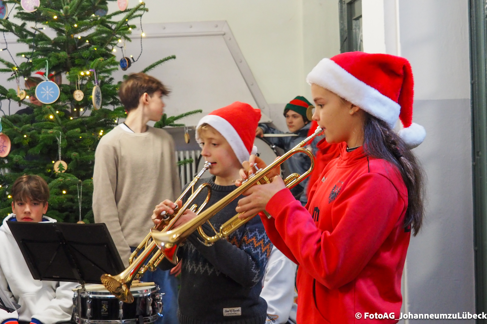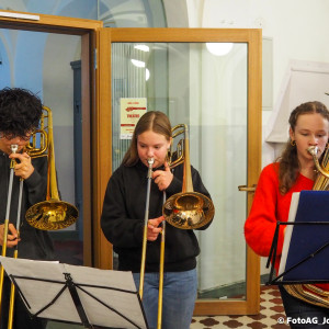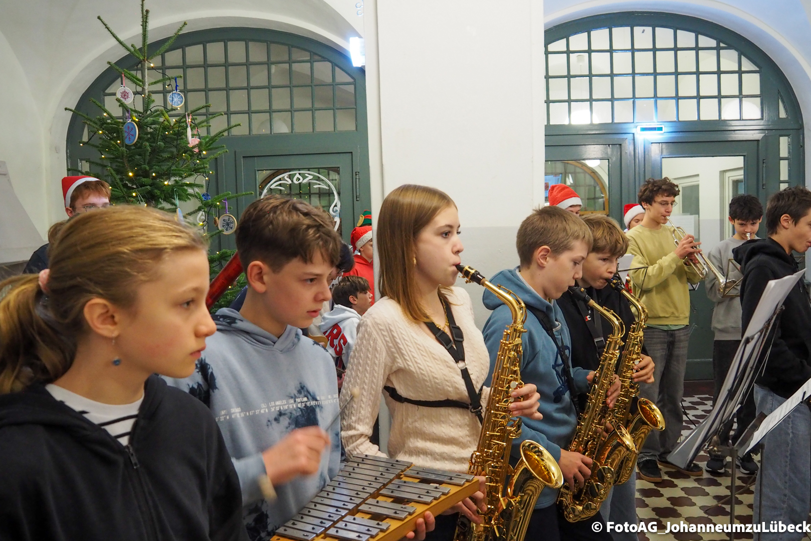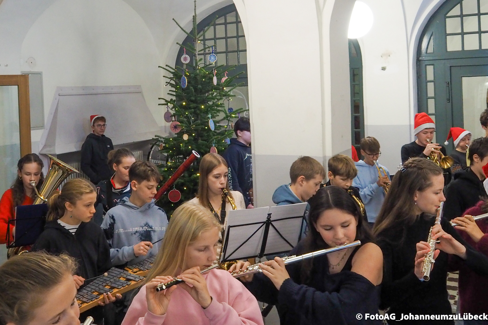 Wie starten am Johanneum die Weihnachtsferien? Natürlich mit Musik! Heute sind nach der 4. Stunde noch einmal alle in die Aula eingeladen, um gemeinsam zuzuhören und zu singen.