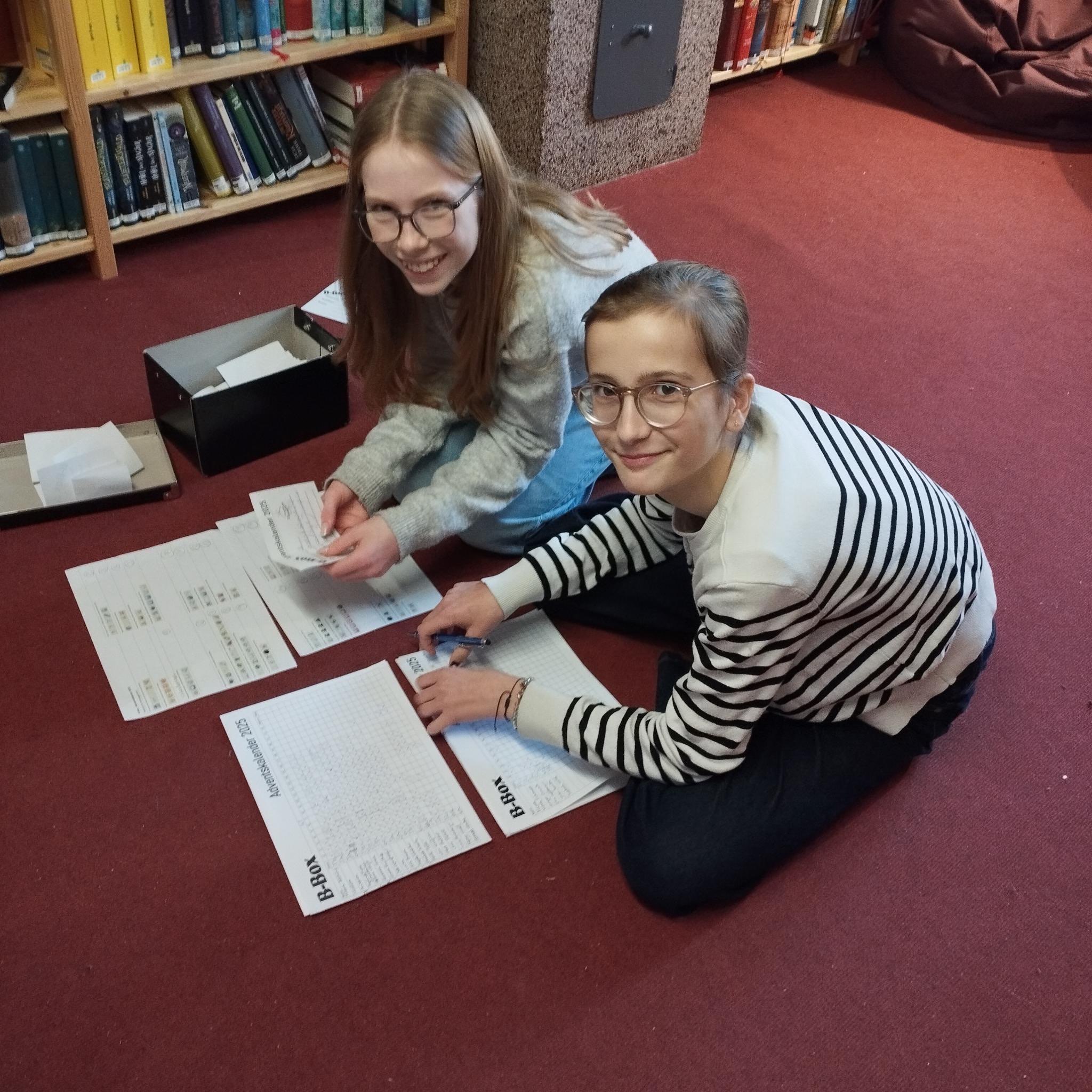 Das B-Box-Team hat sich danach zusammengesetzt und die Punkte ausgezählt. Man konnte zu jedem Tag einen Zettel mit dem Buch, zu dem das Rätsel gehört, abgeben und für jedes richtige hat man einen Punkt bekommen.