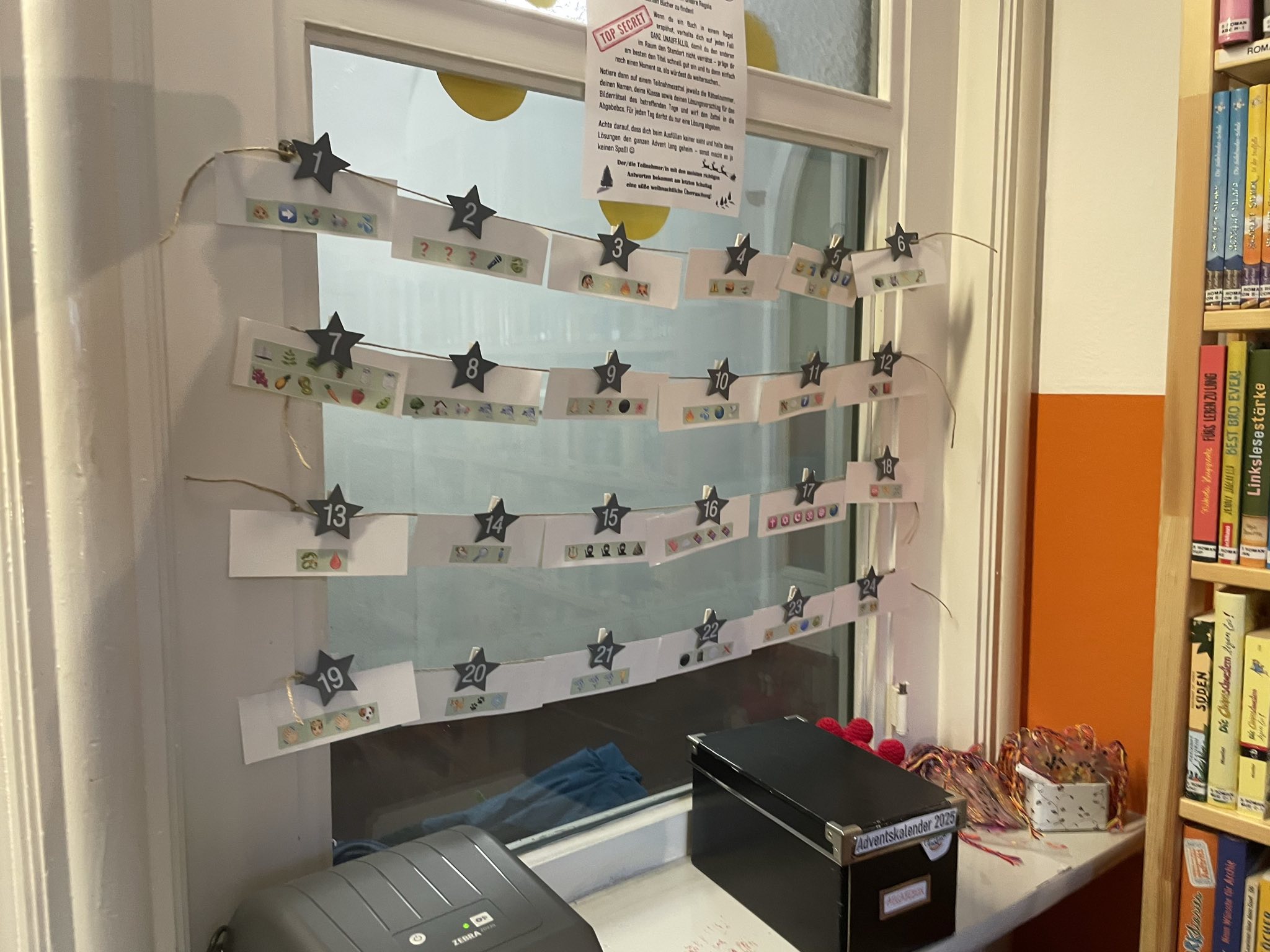 Bestimmt habt ihr alle davon mitbekommen: der Adventskalender der B-Box. Jeden Tag gab es ein Bilderrätsel zu lösen, das zu einem Buchcover in der B-Box geführt hat. Aber wusstet ihr, dass es anfangs nicht als Weihnachtsprojekt geplant war? Das Team hat allerdings immer mehr Ideen gesammelt und den Plan weiter entwickelt, was ziemlich lange gedauert hat.