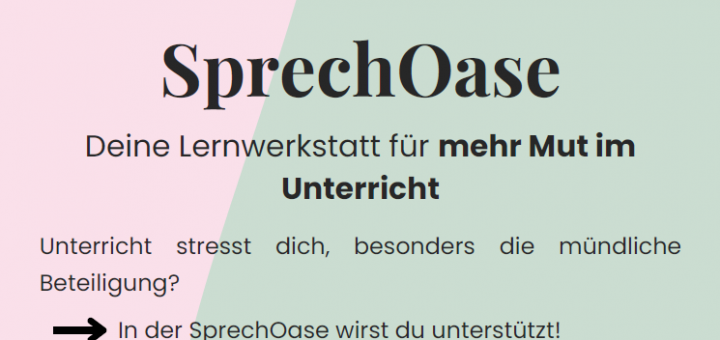 In unserer neu gegründeten Lernwerkstatt SprechOase möchten wir euch dabei unterstützen, den Schulalltag entspannter zu erleben. Ihr lernt Methoden und Strategien kennen, die euch dabei unterstützen, selbstbewusster aufzutreten und euch im Unterricht aktiver mündlich einzubringen.