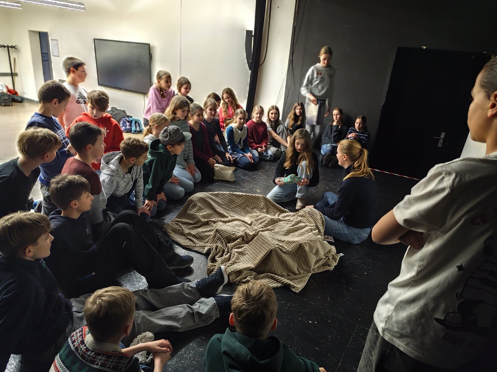 Am nächsten Morgen klingelte der Wecker um 6:30 Uhr. Alle zogen sich an, räumten die Aula auf und frühstückten gemeinsam – mit Brotdosen und sogar selbstgebackenem Kuchen. Danach ging es für die Klasse 6c zusammen mit den Parallelklassen zum Theater Combinale, wo sie ein tolles Theaterstück anschauen durften.