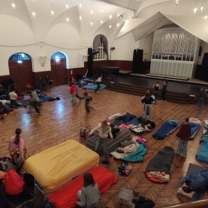 Später machten sich die Kinder fertig fürs Bett. Auf den Matten in der Aula durfte noch ein bisschen geflüstert werden, bevor dann das Licht ausging.