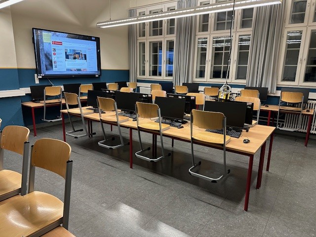 Wer Informatikunterricht hat, der weiß, dass der Informatikraum I in H302 der letzte Raum im Aulatrakt war, der noch aktiv genutzt wurde. Nun ist auch dieser umgezogen, unser neuer Informatikraum I ist Raum H208. Der neue Raum sieht im Wesentlichen genauso aus wie der alte, nur gespiegelt.