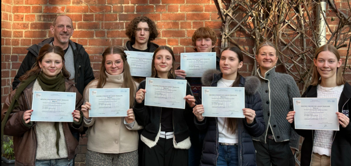 An einem Samstag im Mai 2025 war die kleine Gruppe auf eigene Faust in Institut Français nach Kiel gefahren, um dort die Prüfung in Französisch auf unterschiedlichen Niveaus abzulegen. Bei der Übergabe der Urkunden mit Herrn Janneck und Frau Maack gab es jetzt nochmal Sonderapplaus für Diana Berezovets und Bernat Roos Rafecas, die sogar die Niveaustufe B2 geschafft haben. Und da die Zertifikate lebenslang gültig sind, ist das mit der Verspätung vielleicht auch nicht so dramatisch. Tout vient à point…