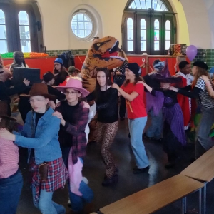 Den ganzen Nachmittag hindurch bot das Faschingsteam tolle Spiele und Aktionen an: Los ging es mit Stoptanz, es folgten Partytänze und Musikwünsche. Ob Michael Jackson, Bibi & Tina, Macarena oder K-Pop, die Tanzfläche war voll! Zwischendurch konnten sich alle an einem vielfältigen Kuchenbuffet bedienen.