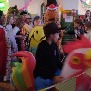 Den Höhepunkt bildete natürlich der Kostümwettbewerb, an dem sich fast alle Kinder mutig beteiligten. Viele Kostüme waren durchdacht und ausgefallen und teilweise unglaublich kreativ selbstgebastelt – darunter eine alte Telefonzelle, ein Legostein und eine Qualle. Die gewann den Wettbewerb schließlich, aber auch andere Kostüme waren ganz vorn dabei.