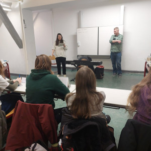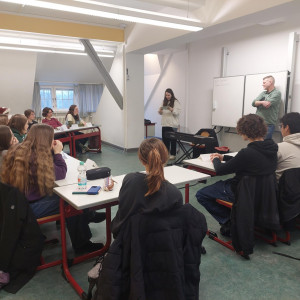 Am 6. und 7. Februar hatten wieder interessierte Schüler:innen von Klasse 10-Q2 die Möglichkeit, sich angeleitet von Profi-Slammer:innen beim Schreiben von Slam-Texten auszuprobieren. Dieses Jahr kamen für diesen Workshop Selina Seemann und Björn Högsdal aus Kiel angereist, um zunächst eigene Texte vorzustellen, typische Merkmale von Poetry Slam zu erarbeiten und dann das eigene Schreiben anzuregen und diesen Schreibprozess zu begleiten. So ist mindestens einer der beiden Texte entstanden, den die Schüler:innen dann beim Schulslam am 10. März um 19:00 Uhr in der Mensa der Hüxschule präsentieren, in der Hoffnung, dank Publikumsjury-Bepunktung nochmal im Finale an dem Abend ihren zweiten Text ins Rennen zu schicken. Denn die zwei Gewinner:innen des Abends starten dann bei der großen Lübecker Schulslam-Meisterschaft so richtig durch.