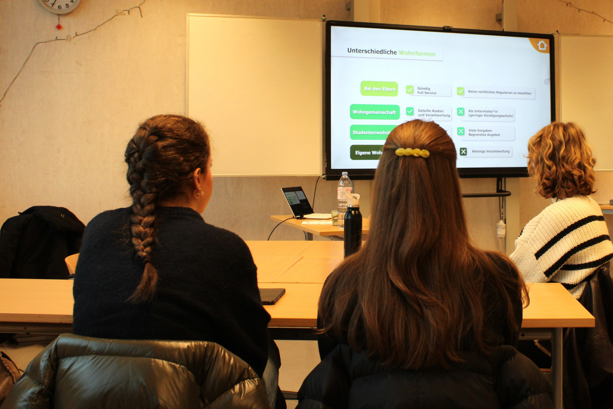 Auch wir hatten die Möglichkeit, etwas über die Themenbereiche Finanzen, Wohnen, Steuern und Berufsstart zu erfahren. Die meisten Referenten waren, im Gegensatz zu unserer vorherigen Erwartung, aus Lübeck oder der Region und hatten somit einen lokalen Bezug zu uns, einige waren sogar ehemalige Schüler des Johanneums. In Blöcken von jeweils 70 Minuten berichteten die Gäste zu ihren jeweiligen Fachbereichen von Erfahrungen, die sie größtenteils aus ihrem Berufsleben haben.
