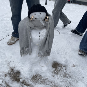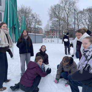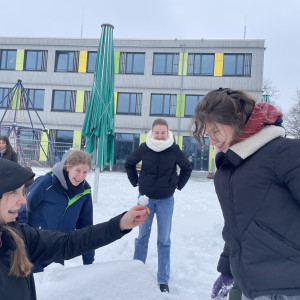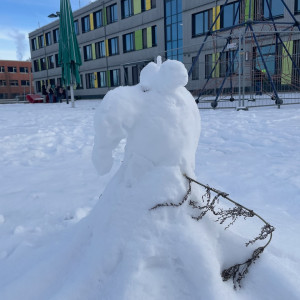 Hinter den kreativen Statuen steckt die 10e mit Frau Neubert, die den (letzten?) Neuschnee genutzt hat, um sich originell auszutoben!