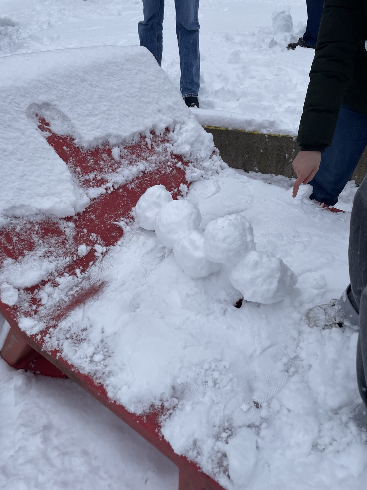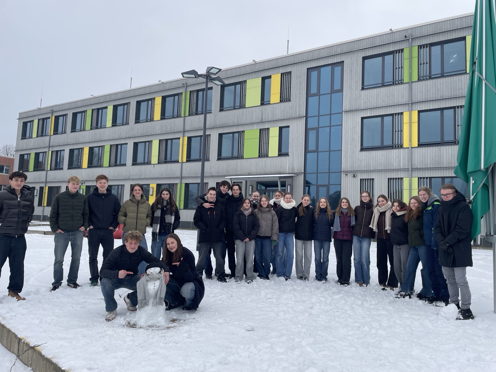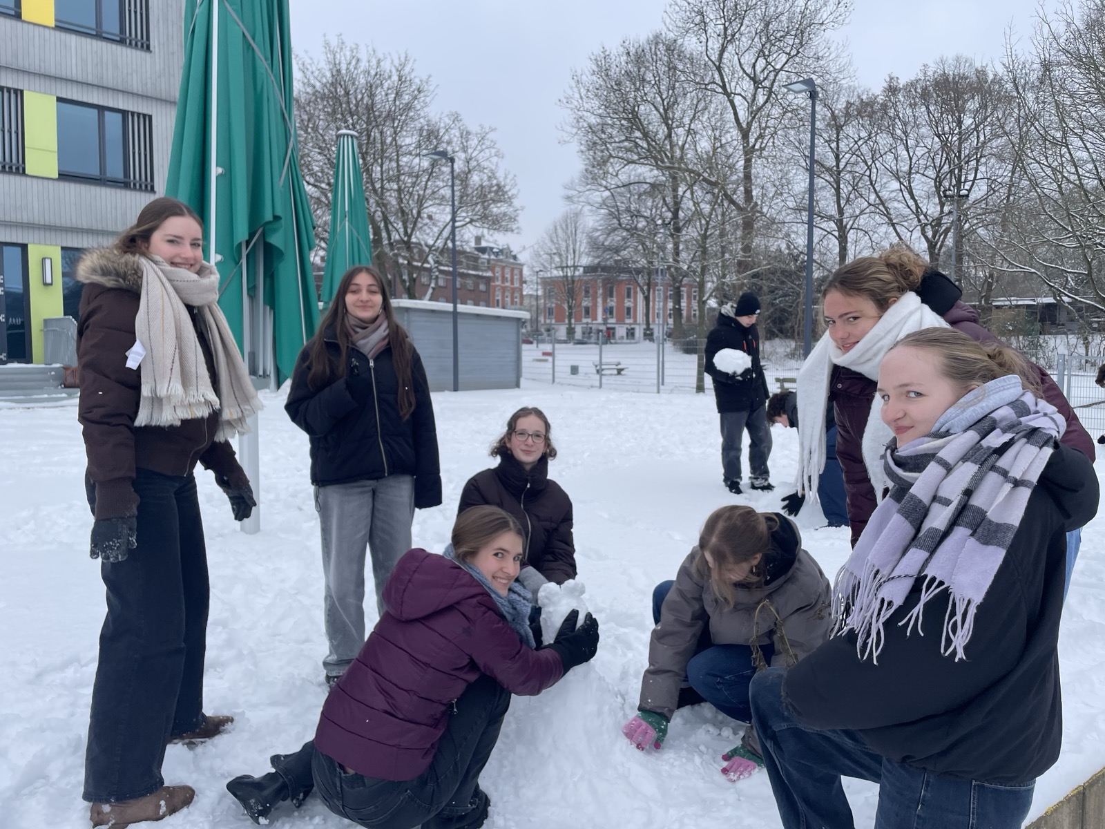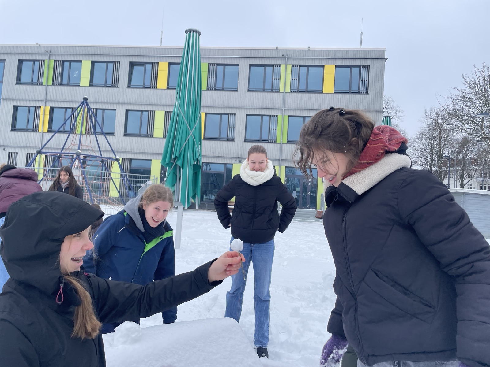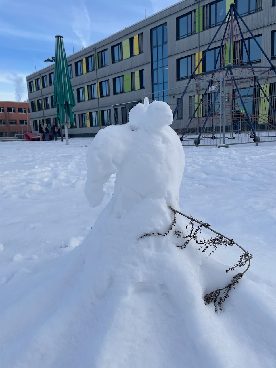 Hinter den kreativen Statuen steckt die 10e mit Frau Neubert, die den (letzten?) Neuschnee genutzt hat, um sich originell auszutoben!