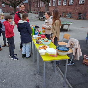Auch abseits der Bühne war für eine angenehme Atmosphäre gesorgt: Die Oberstufe organisierte ein kleines, liebevoll gestaltetes Buffet und sammelte mit dem Verkauf von Speisen und Getränken Spenden für ihre Abikasse. Darüber hinaus hatten die Gäste die Möglichkeit, die musikalische Arbeit an unserer Schule zu unterstützen. Es wurden freiwillige Spenden für die Musik am Johanneum gesammelt, die einen wichtigen Beitrag zur Förderung zukünftiger musikalischer Projekte leisten.