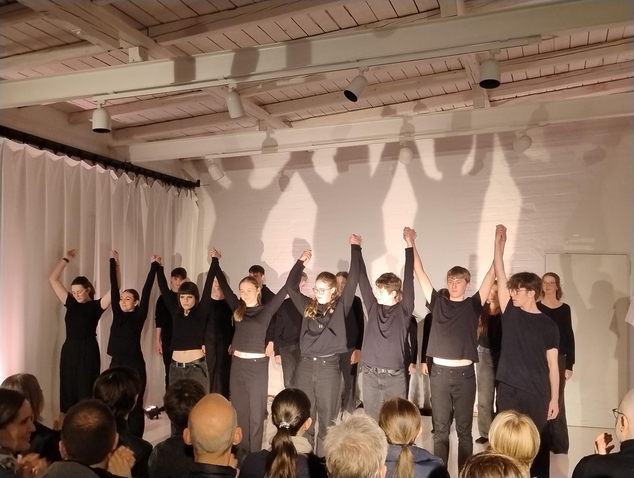 Am Ende blieben ein berührtes und begeistertes Publikum und der Dank: Der der Jugendlichen für ihre Familien und auch für ihre Lehrerin Christiane Maack und der für ein eindrückliches und professionell präsentiertes Stück.