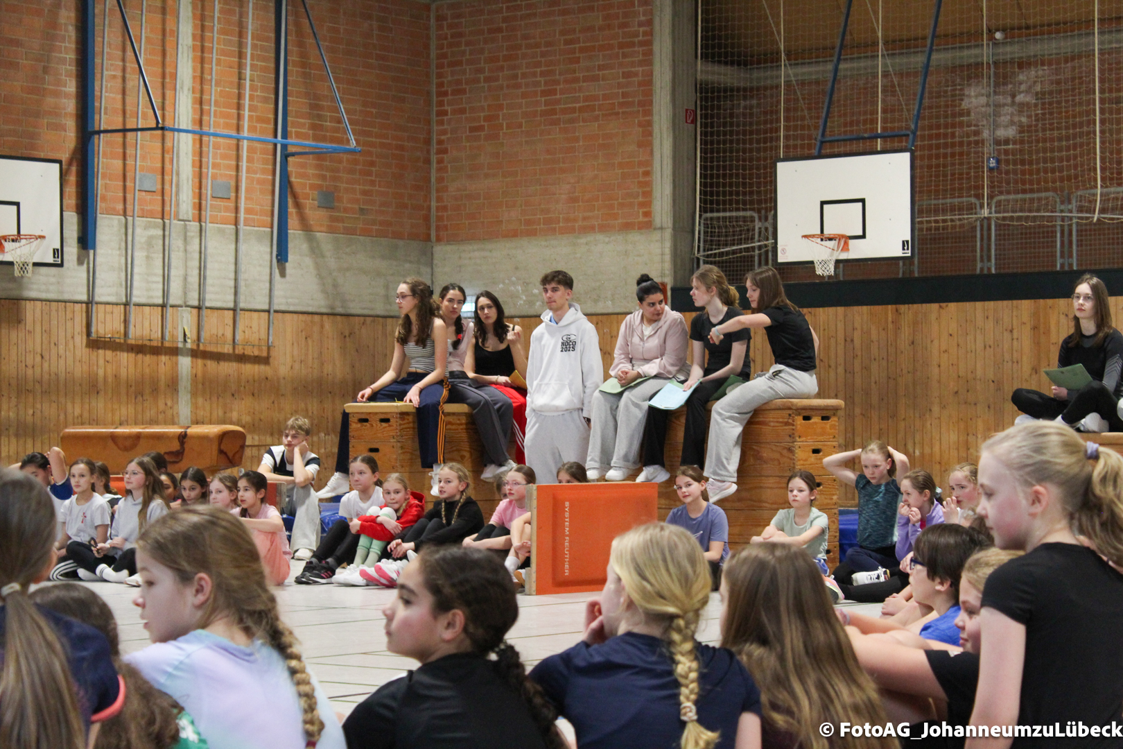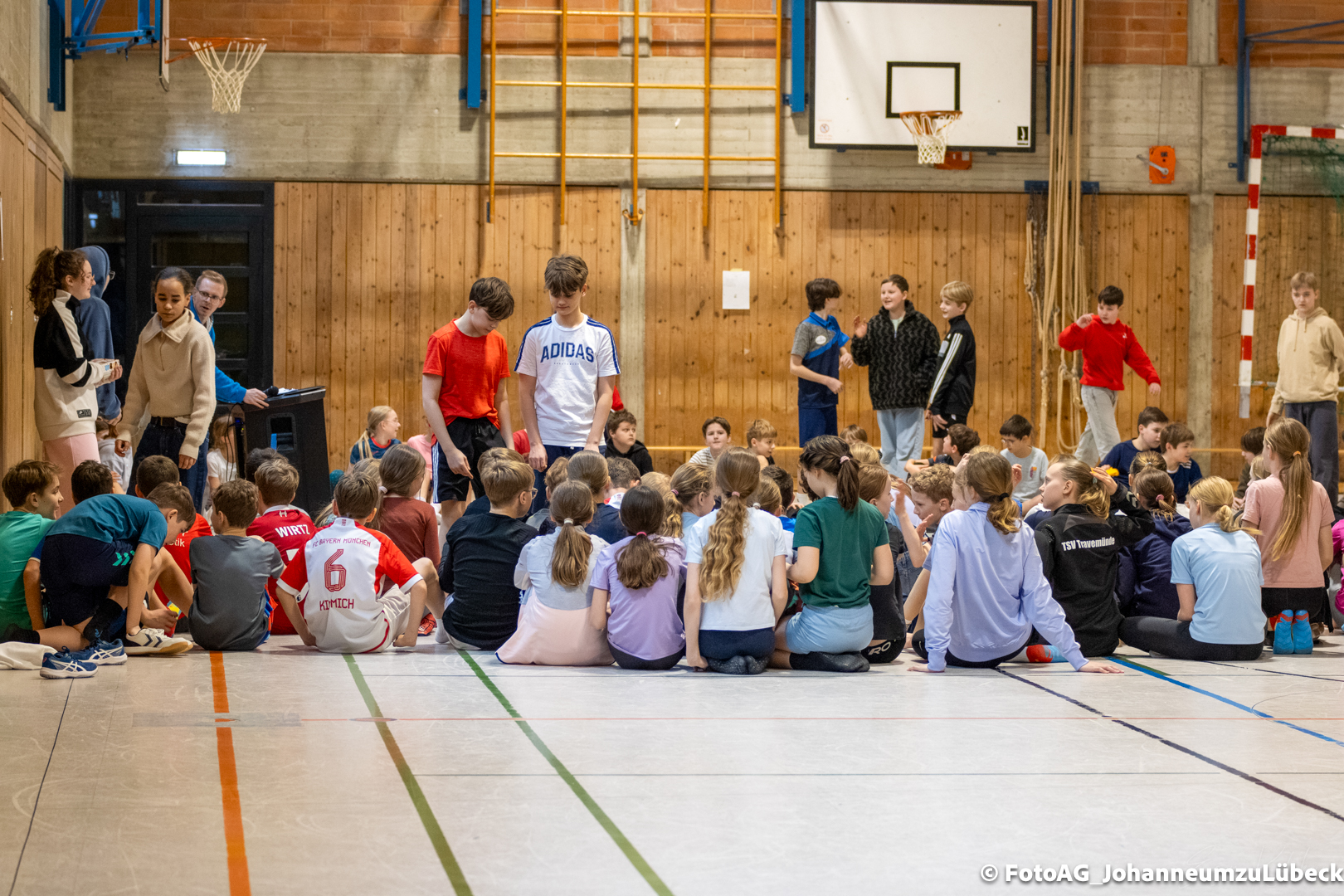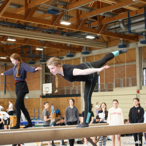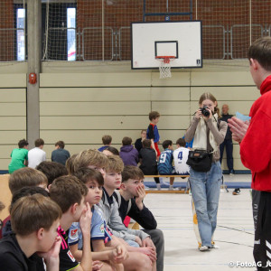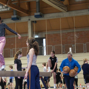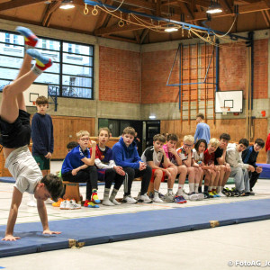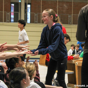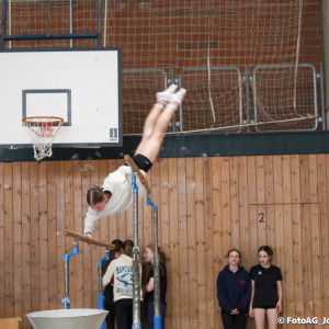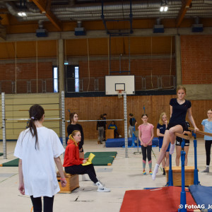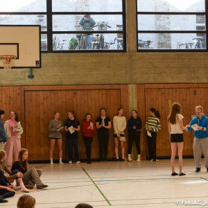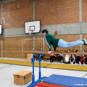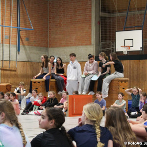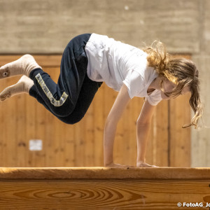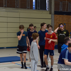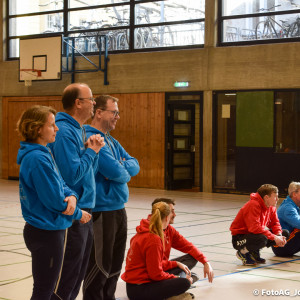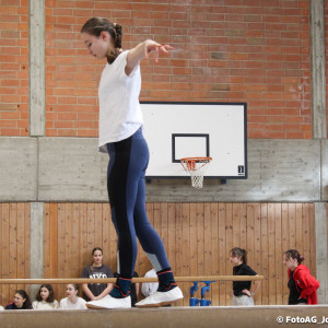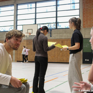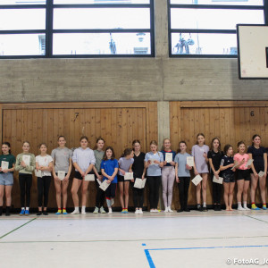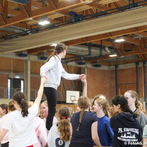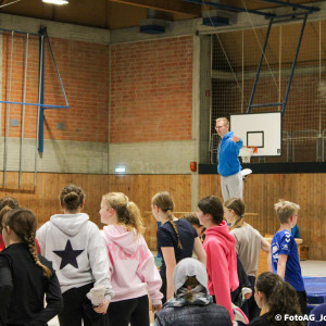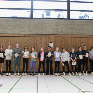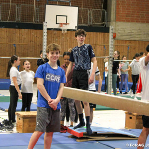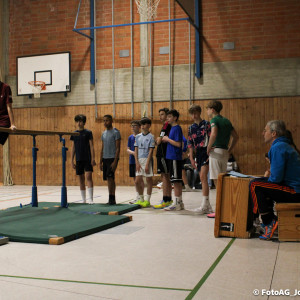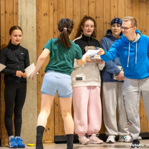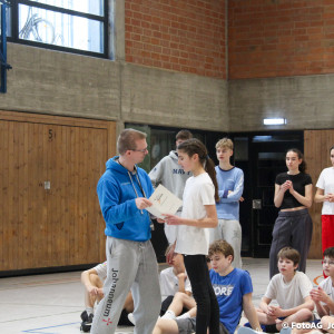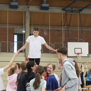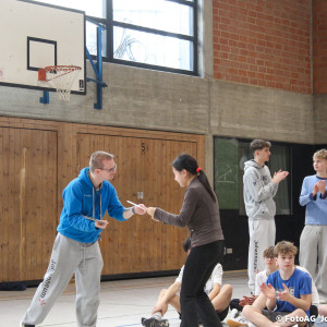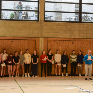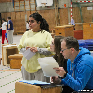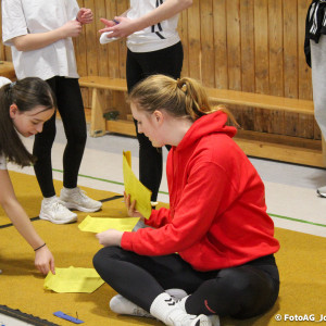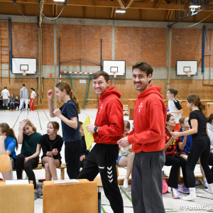 Nach vielen geschlagenen Rädern, Handständen und Vorwärtsrollen war es endlich soweit und unsere Darbietungen wurden ausgewertet. Um uns die Zeit zu vertreiben, bis die Ehrenurkunden verteilt wurden, baten die Riegenführer:innen uns spaßige Pausenspiele an, die mit Freude angenommen worden sind.