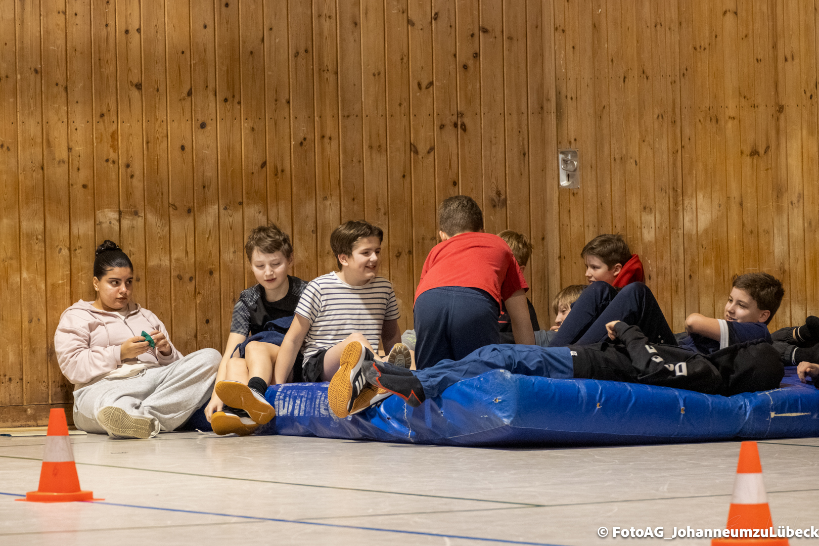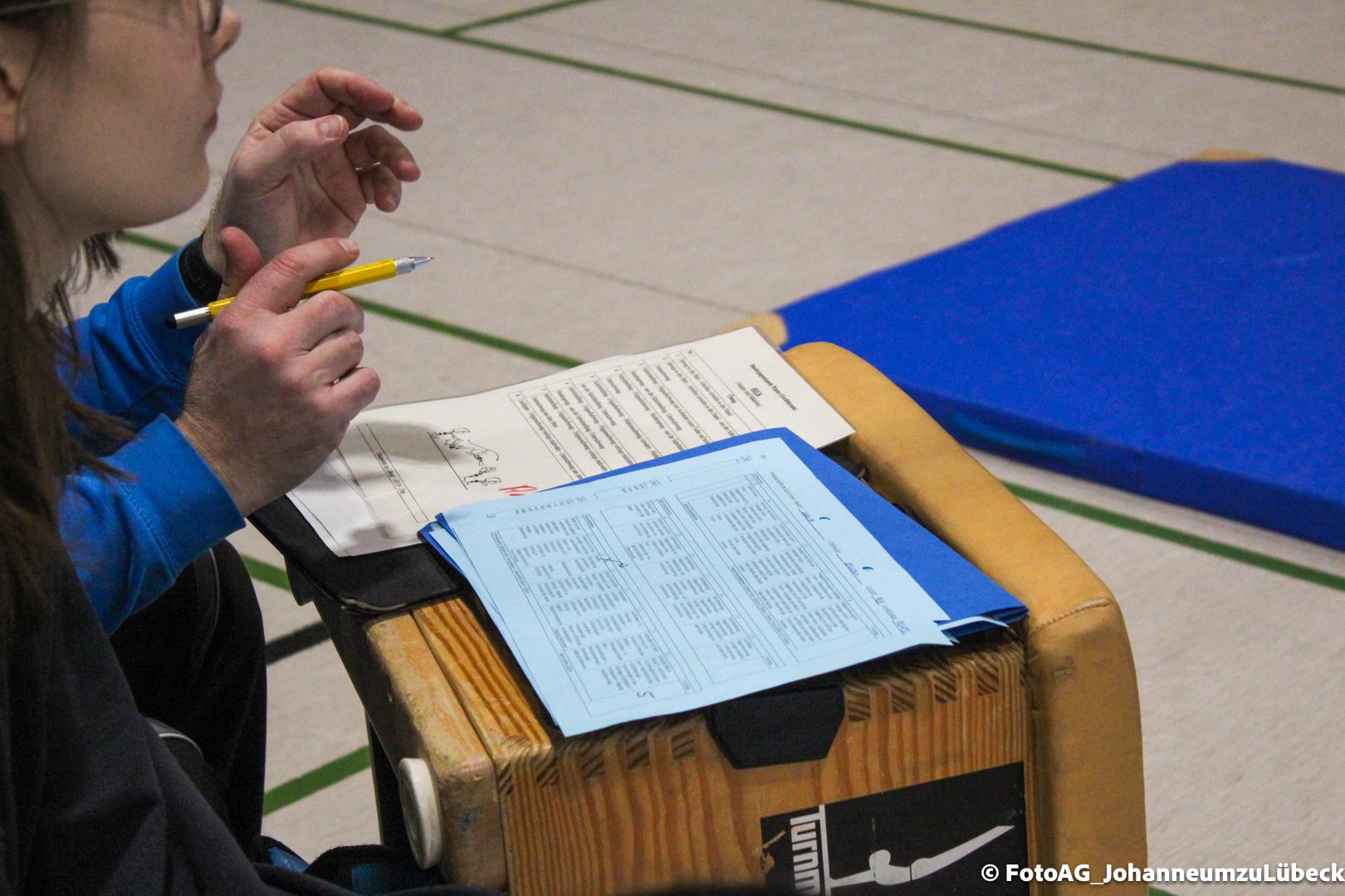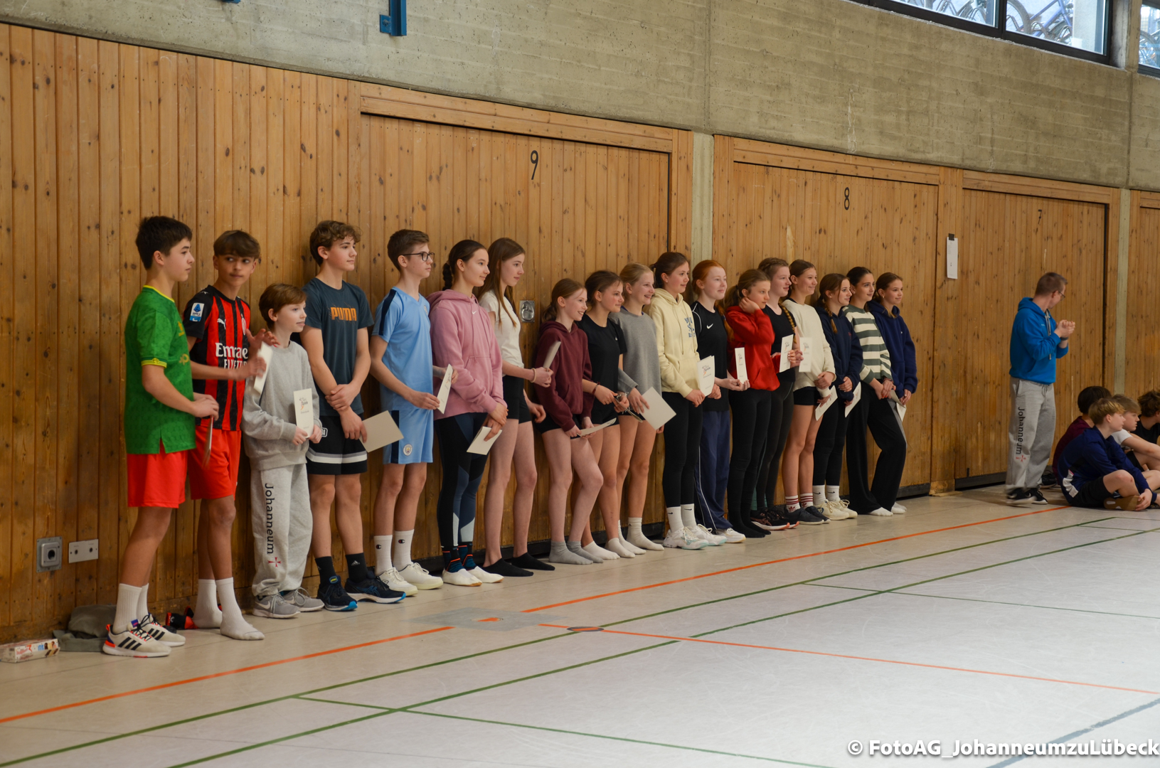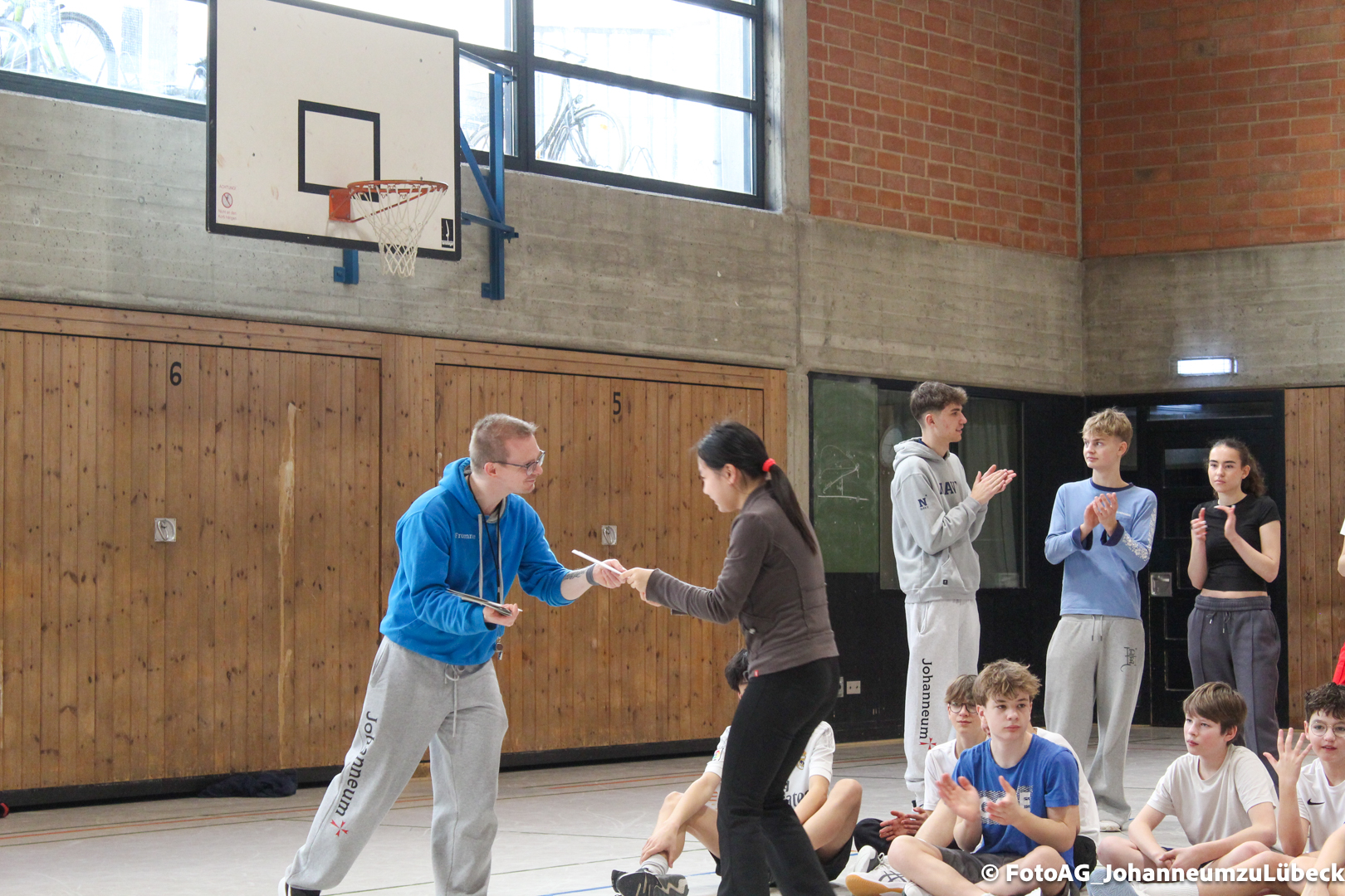Nach vielen geschlagenen Rädern, Handständen und Vorwärtsrollen war es endlich soweit und unsere Darbietungen wurden ausgewertet. Um uns die Zeit zu vertreiben, bis die Ehrenurkunden verteilt wurden, baten die Riegenführer:innen uns spaßige Pausenspiele an, die mit Freude angenommen worden sind.