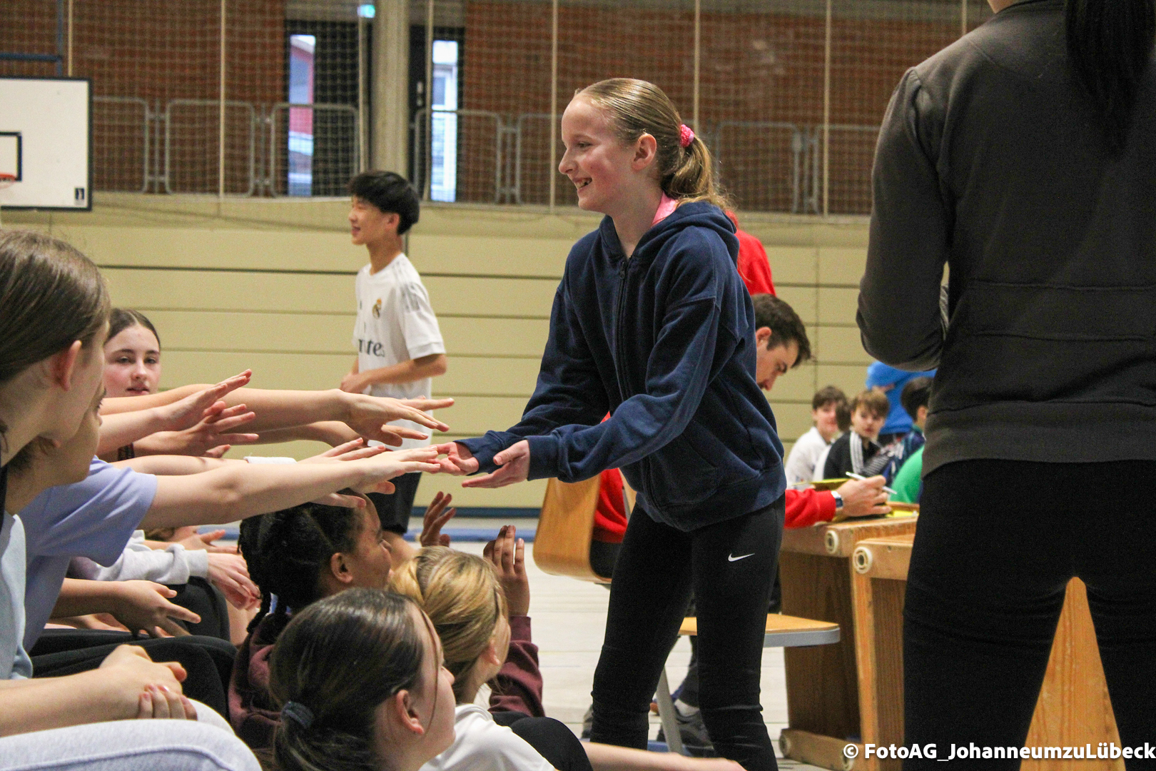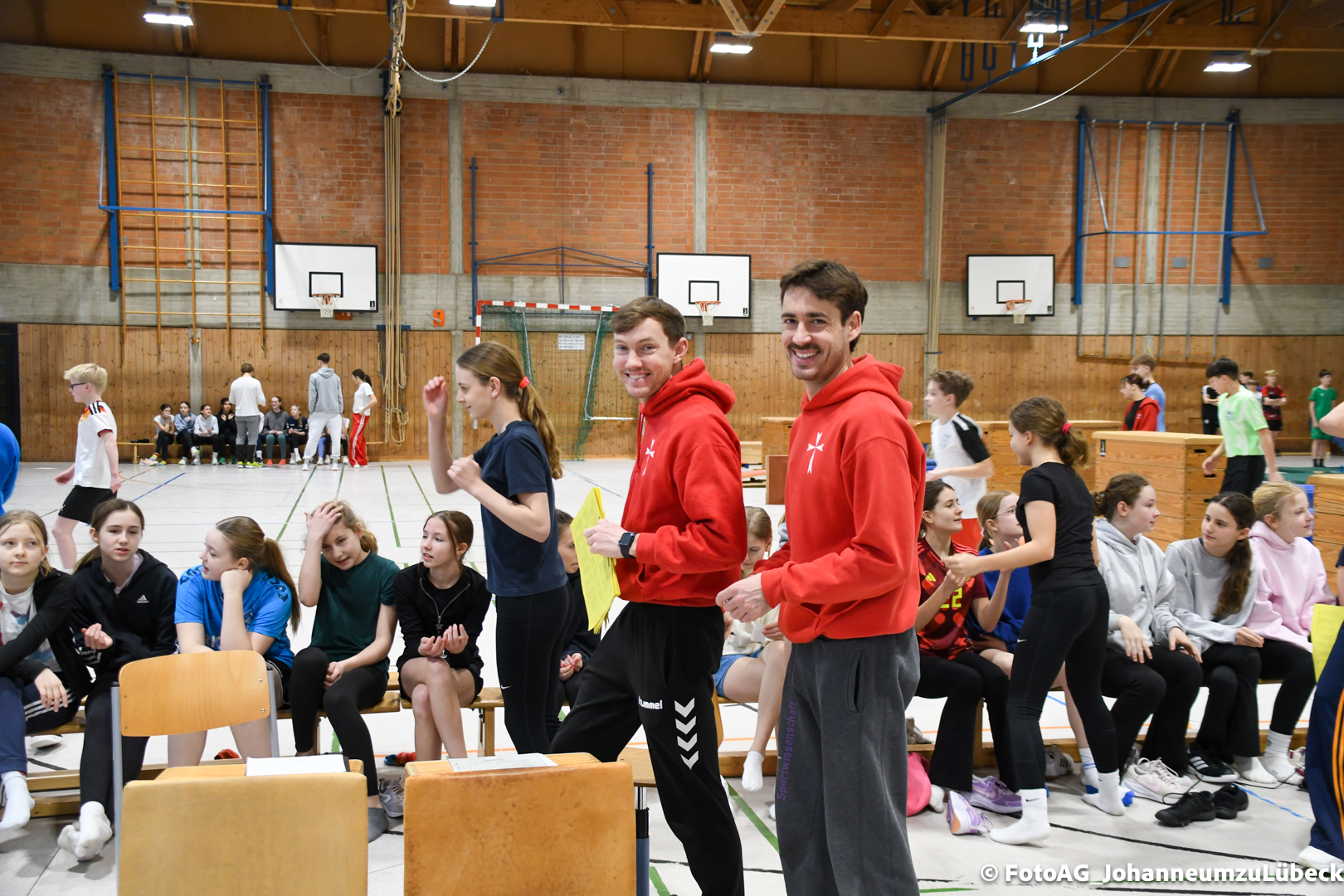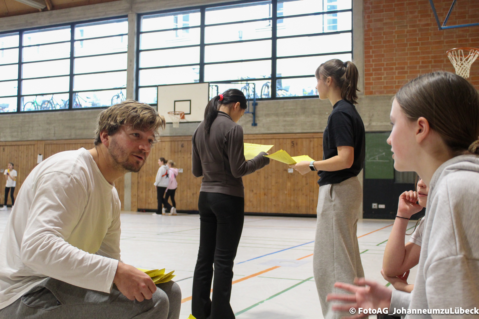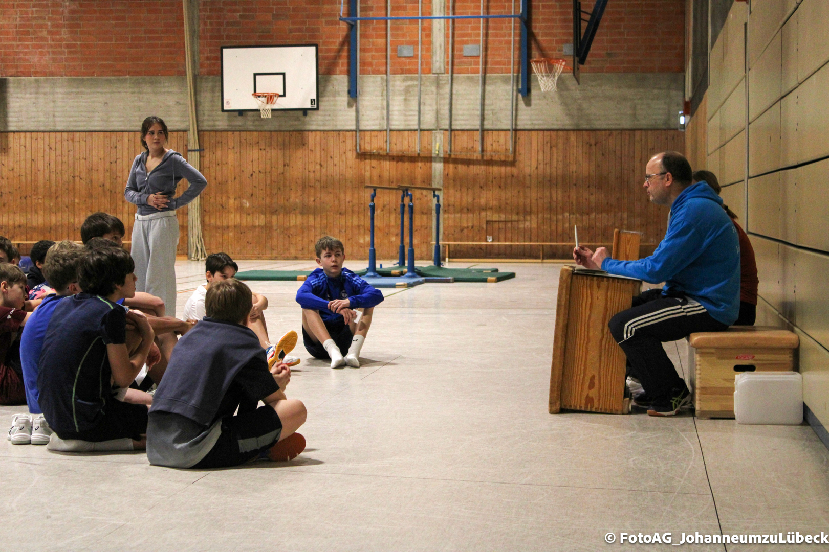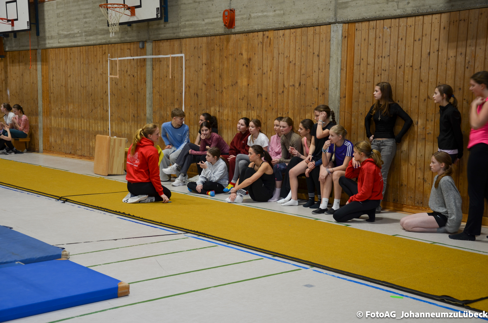 Nach vielen geschlagenen Rädern, Handständen und Vorwärtsrollen war es endlich soweit und unsere Darbietungen wurden ausgewertet. Um uns die Zeit zu vertreiben, bis die Ehrenurkunden verteilt wurden, baten die Riegenführer:innen uns spaßige Pausenspiele an, die mit Freude angenommen worden sind.