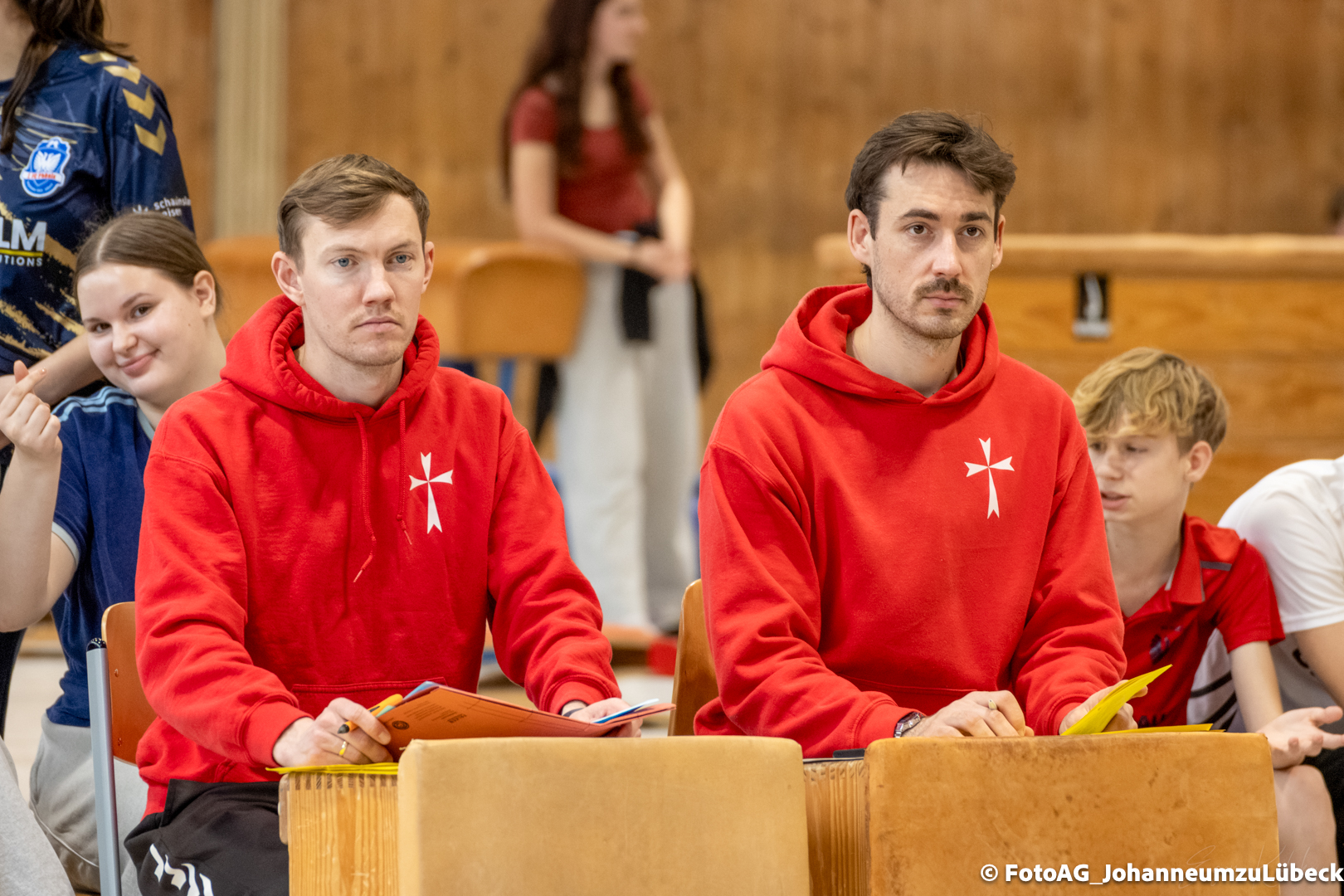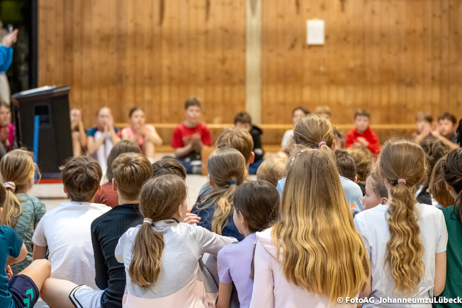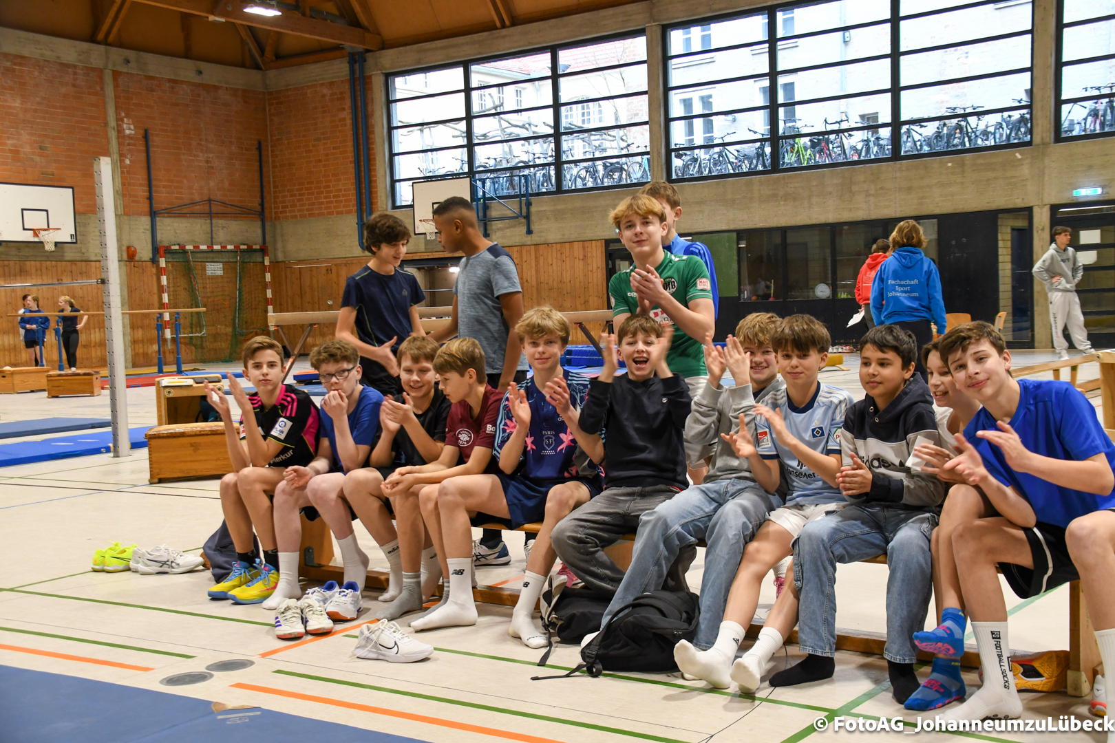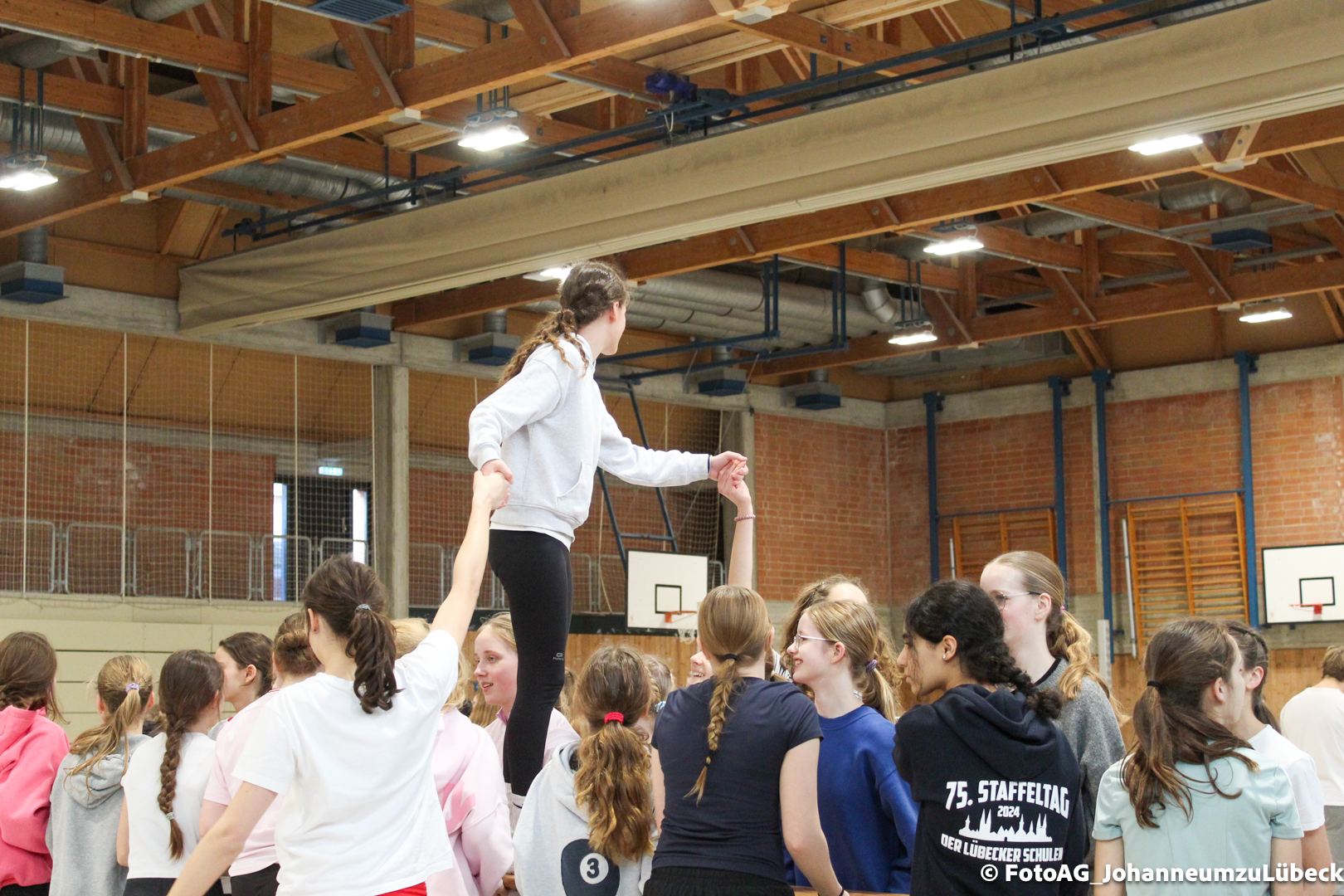 Nach vielen geschlagenen Rädern, Handständen und Vorwärtsrollen war es endlich soweit und unsere Darbietungen wurden ausgewertet. Um uns die Zeit zu vertreiben, bis die Ehrenurkunden verteilt wurden, baten die Riegenführer:innen uns spaßige Pausenspiele an, die mit Freude angenommen worden sind.