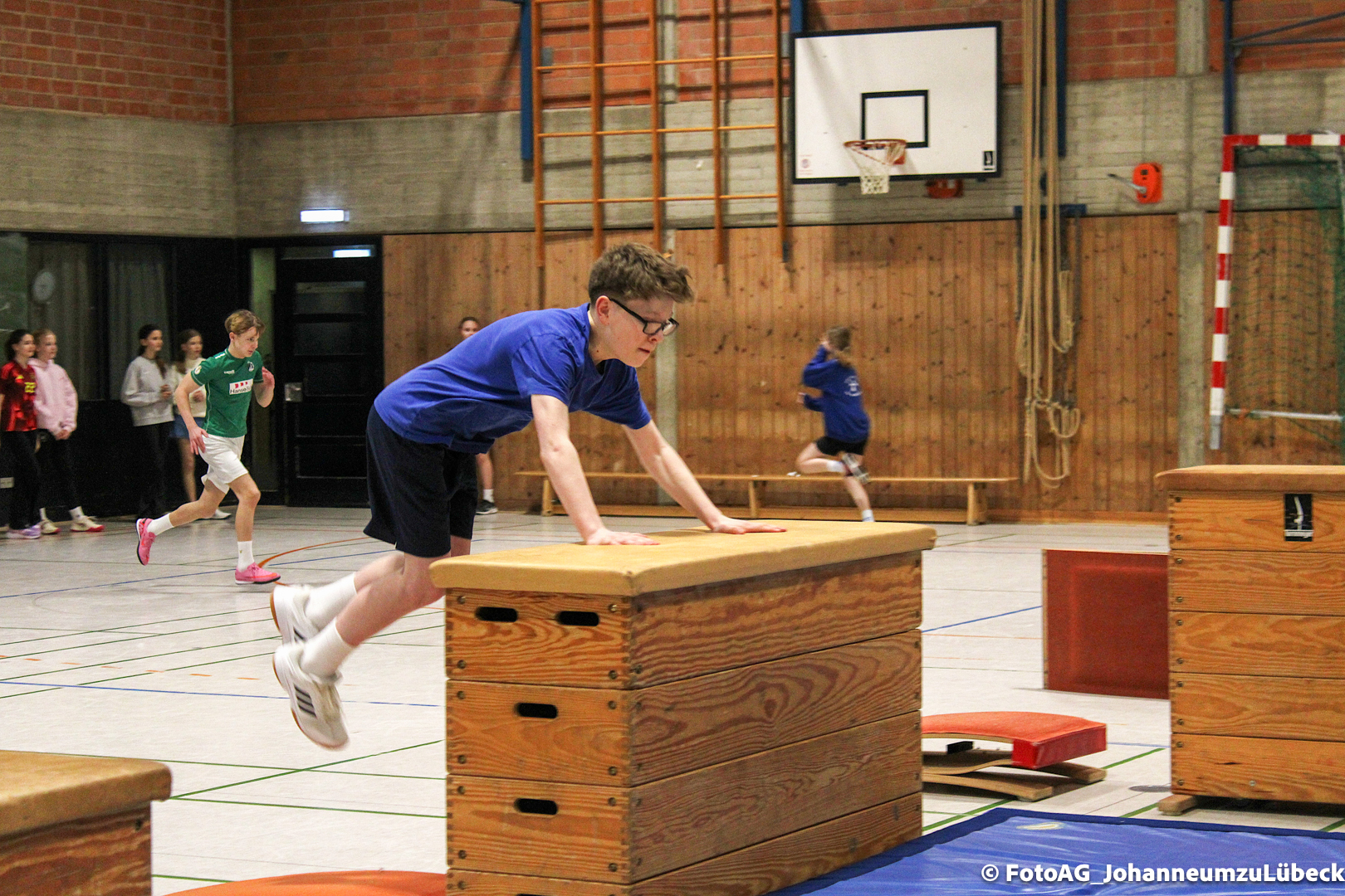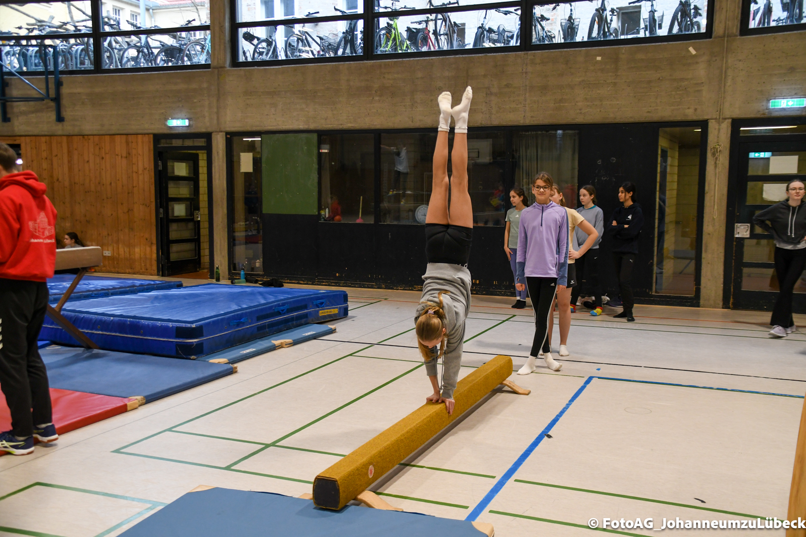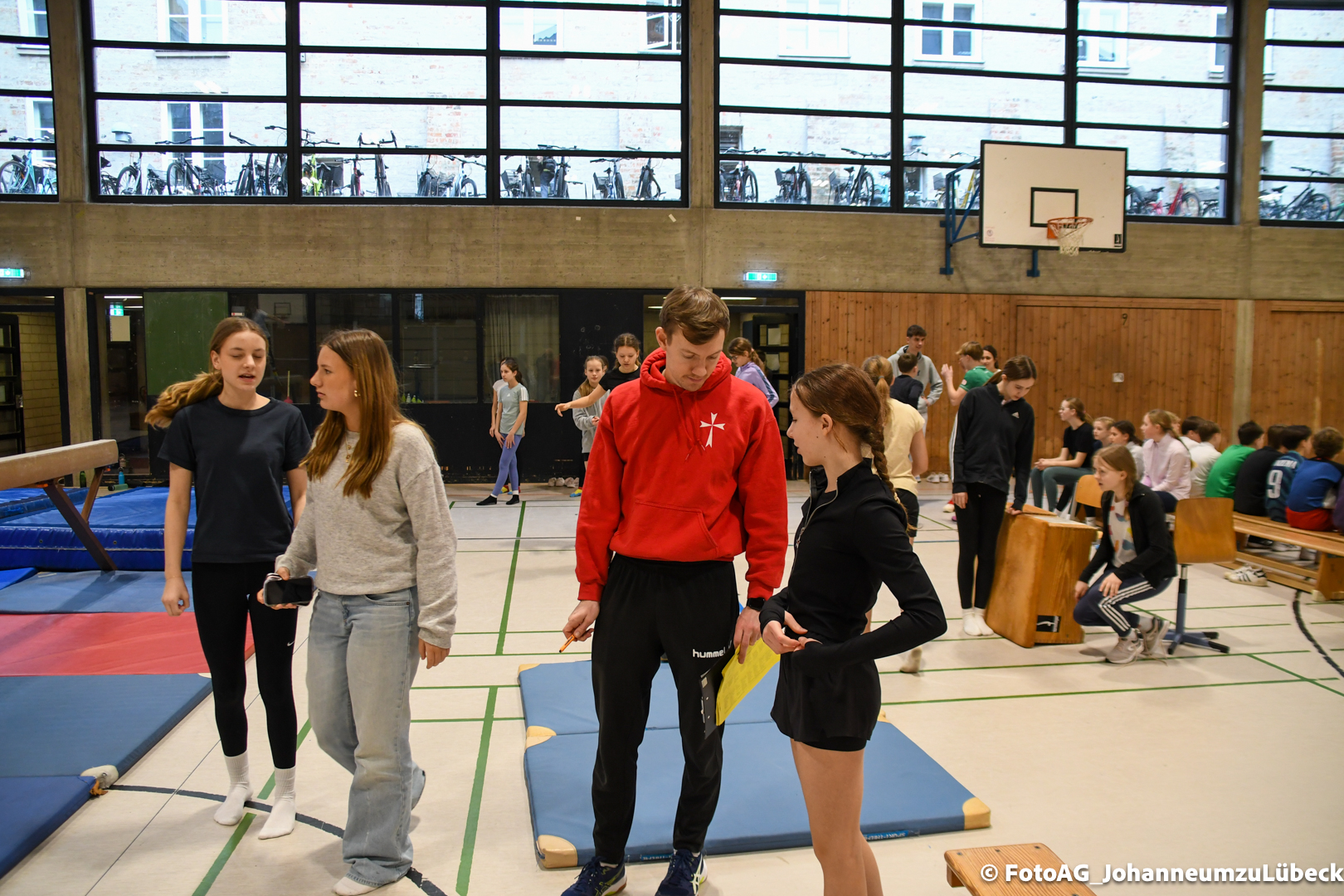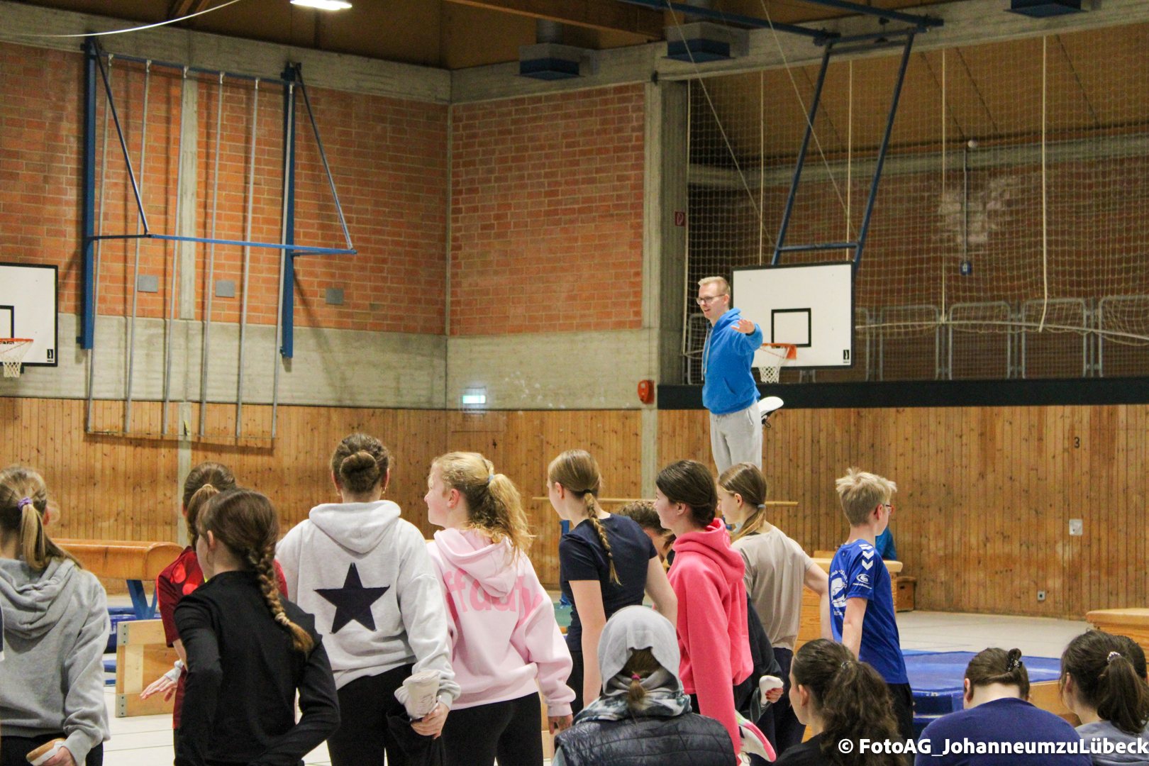 Gestartet hat alles mit einer Ansprache von Herrn Fromme, bevor wir klassenweise mit unseren Riegenführer:innen von Station zu Station geführt wurden. Nach dem jeweiligen Einturnen konnten wir dann den Lehrkräften vorführen, was wir zuvor in unseren Unterrichtsstunden geübt hatten.