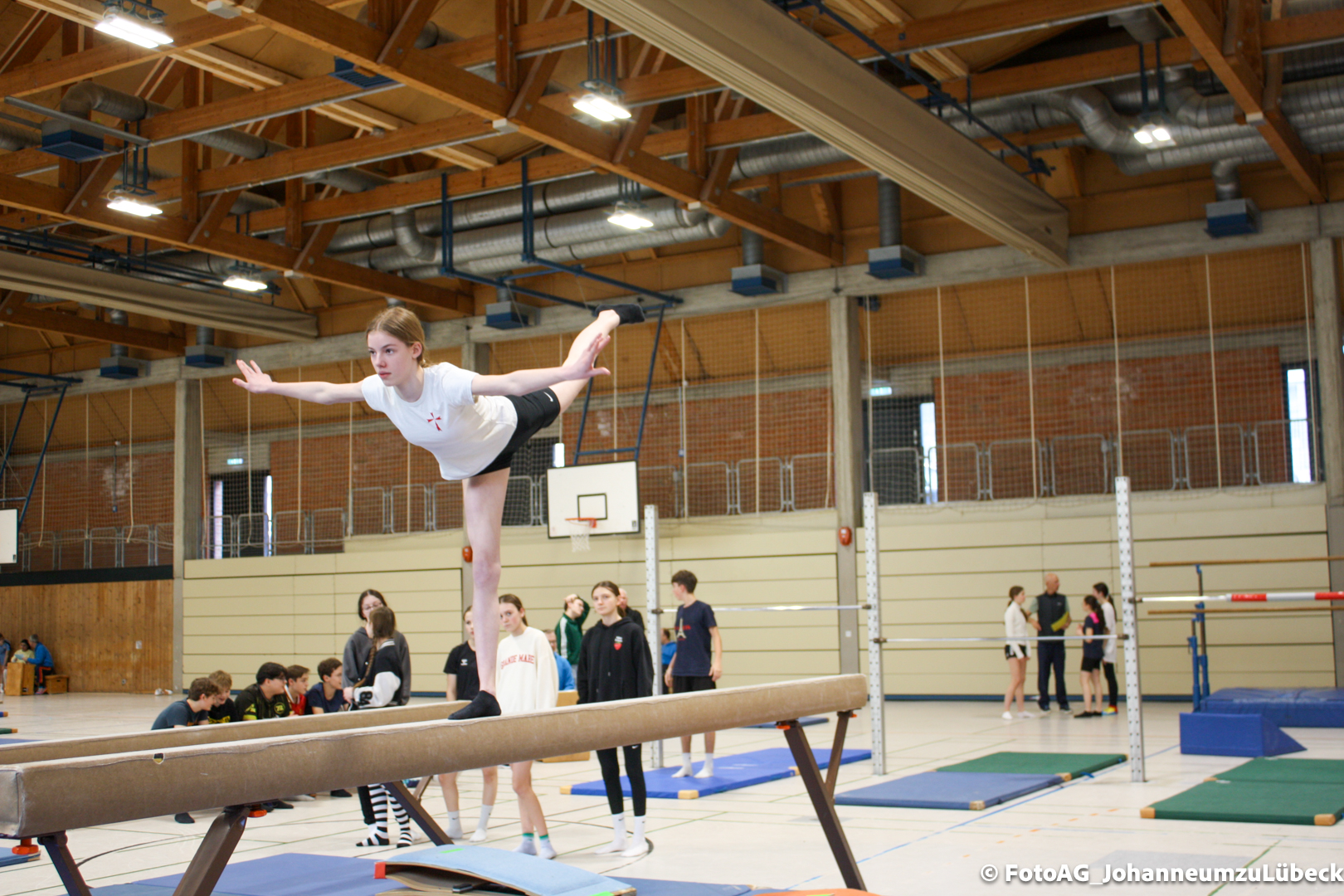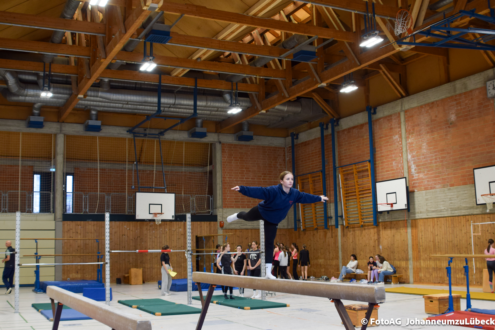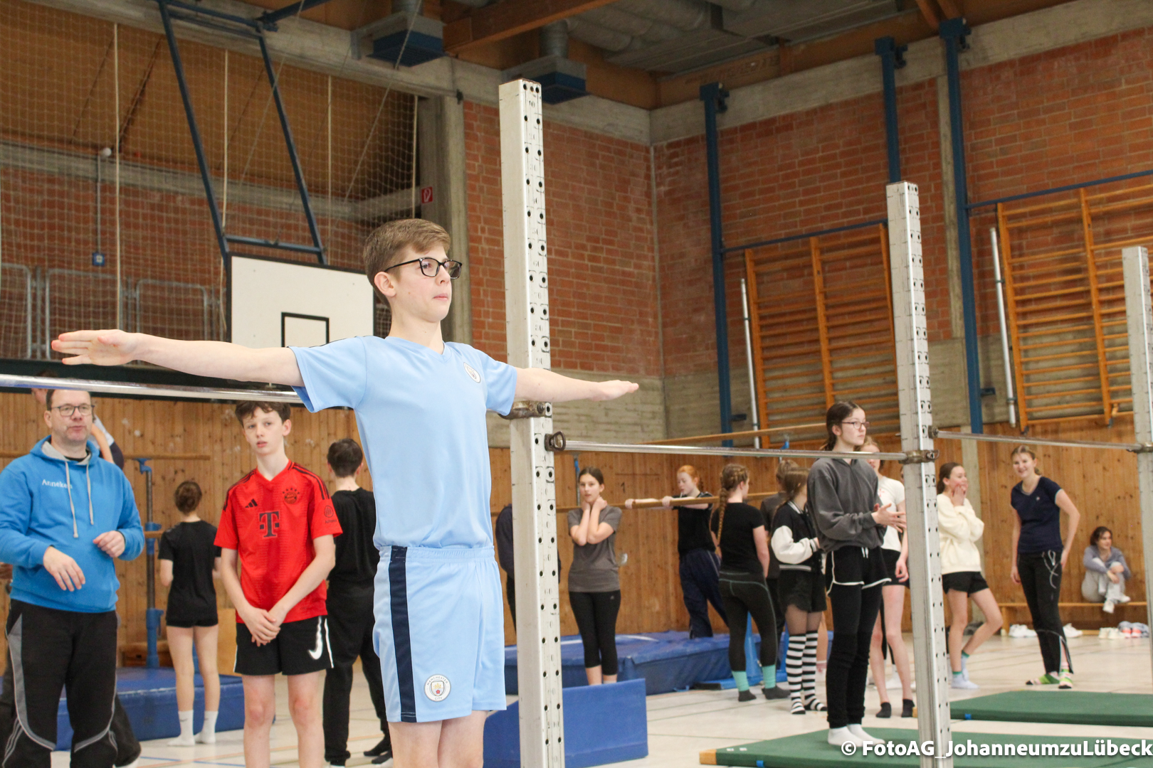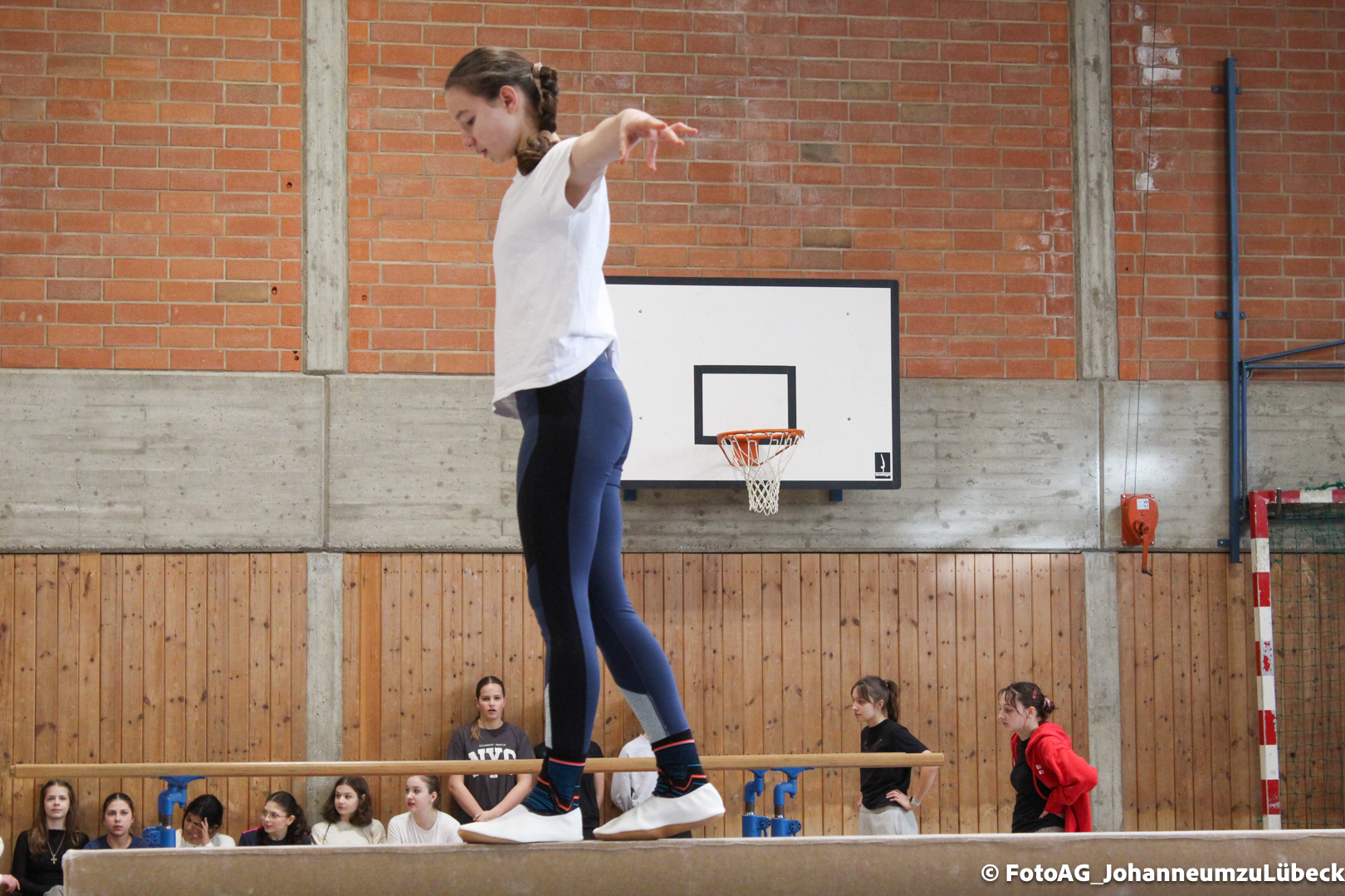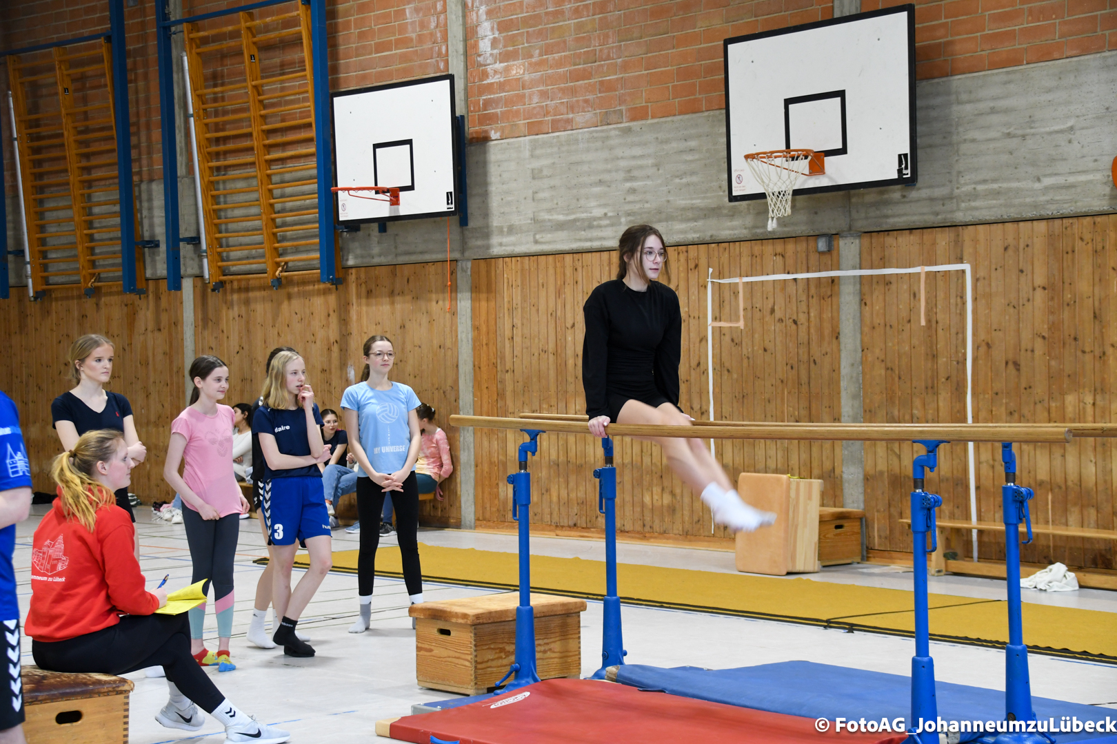 Gestartet hat alles mit einer Ansprache von Herrn Fromme, bevor wir klassenweise mit unseren Riegenführer:innen von Station zu Station geführt wurden. Nach dem jeweiligen Einturnen konnten wir dann den Lehrkräften vorführen, was wir zuvor in unseren Unterrichtsstunden geübt hatten.