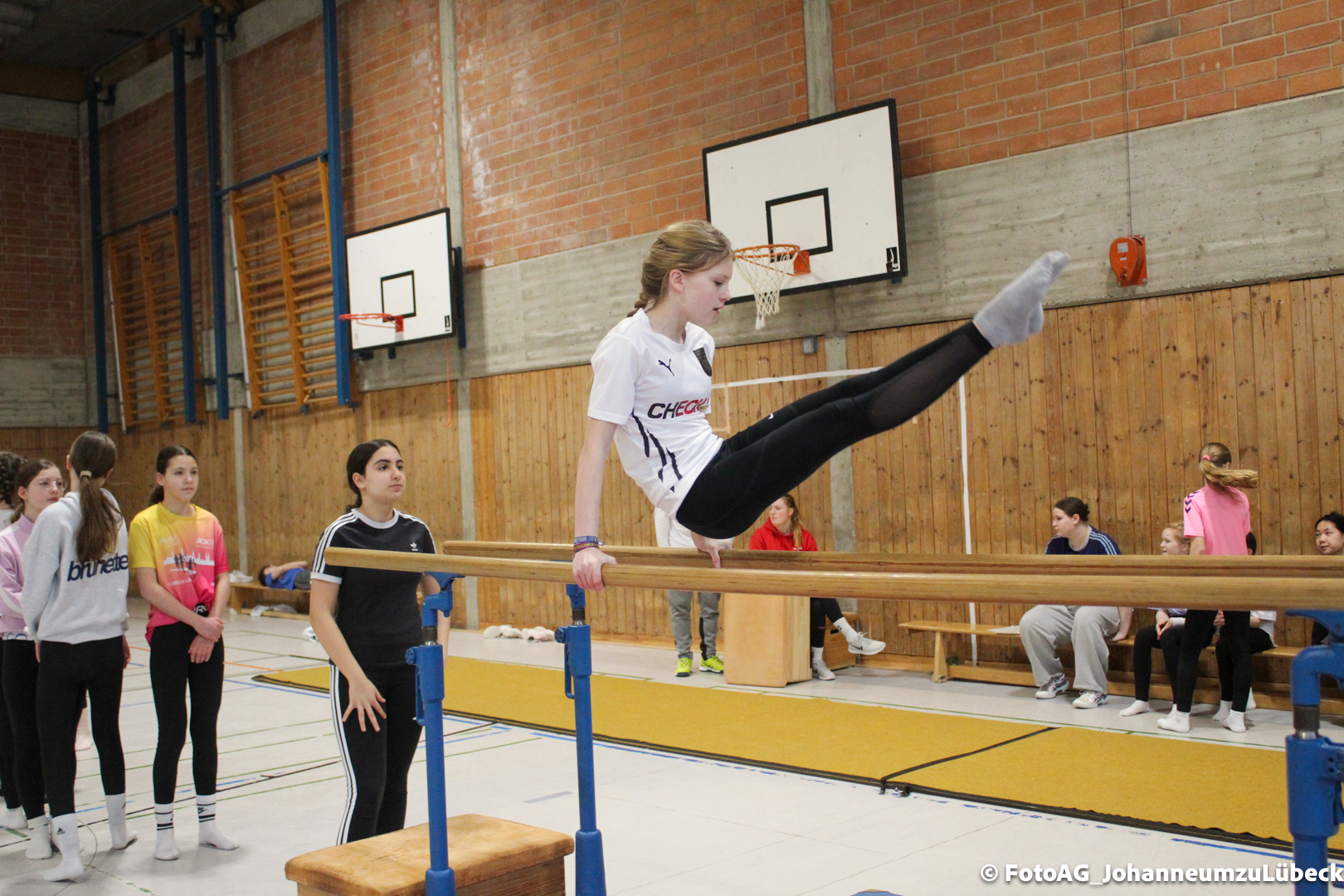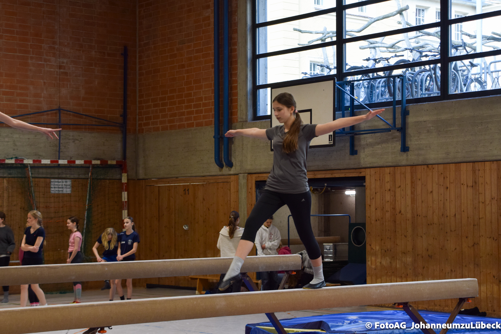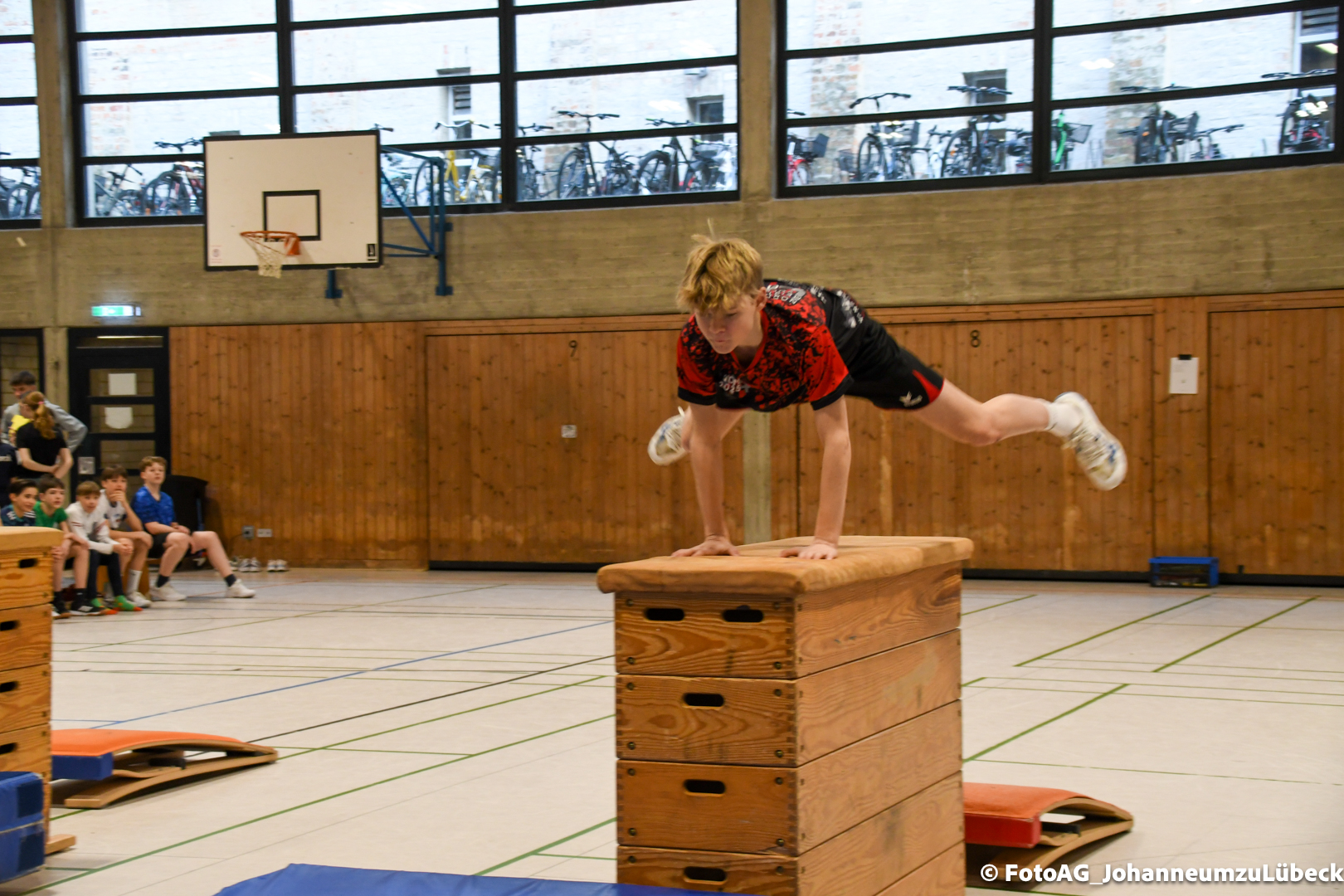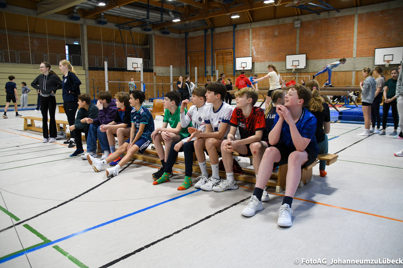 Gestartet hat alles mit einer Ansprache von Herrn Fromme, bevor wir klassenweise mit unseren Riegenführer:innen von Station zu Station geführt wurden. Nach dem jeweiligen Einturnen konnten wir dann den Lehrkräften vorführen, was wir zuvor in unseren Unterrichtsstunden geübt hatten.