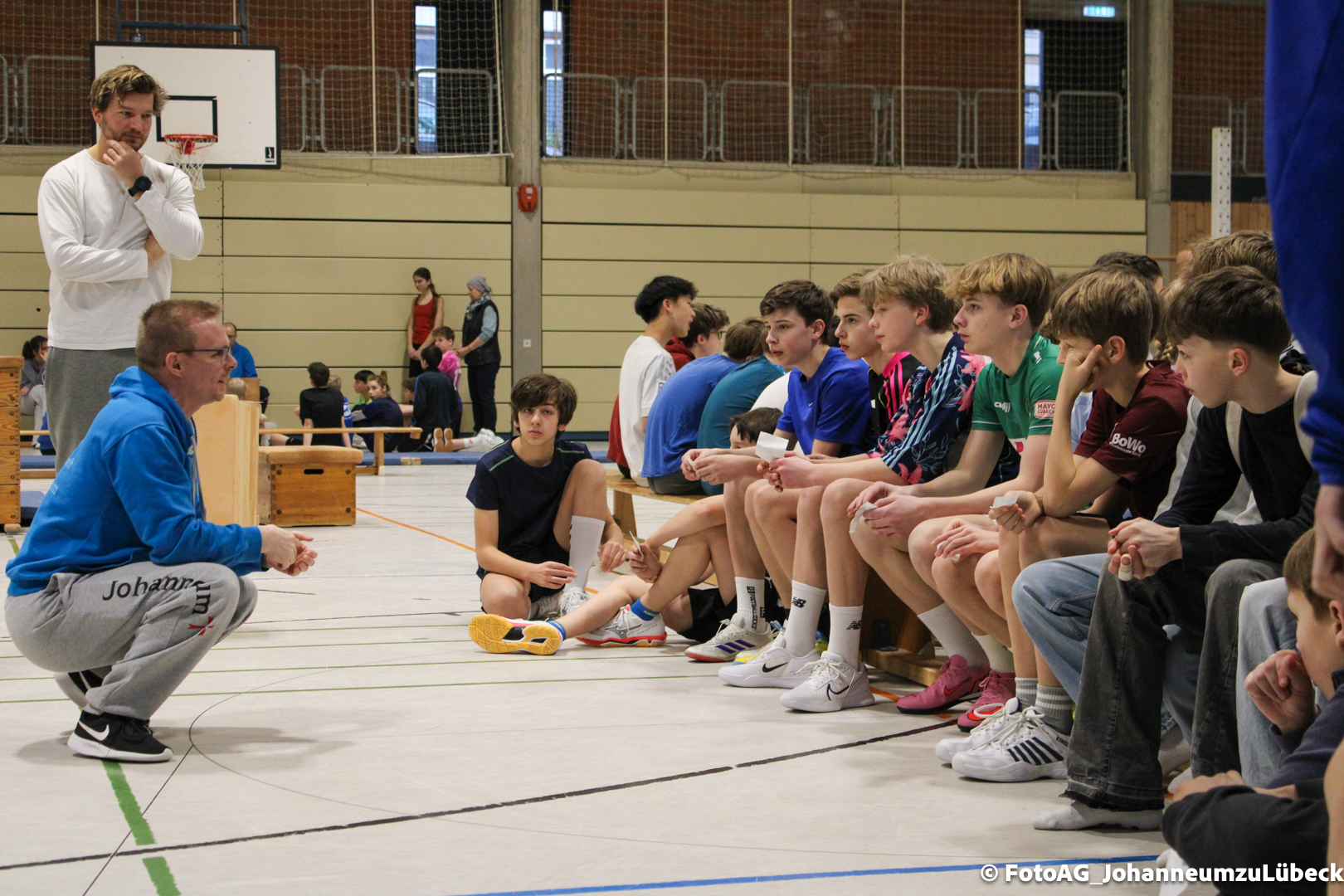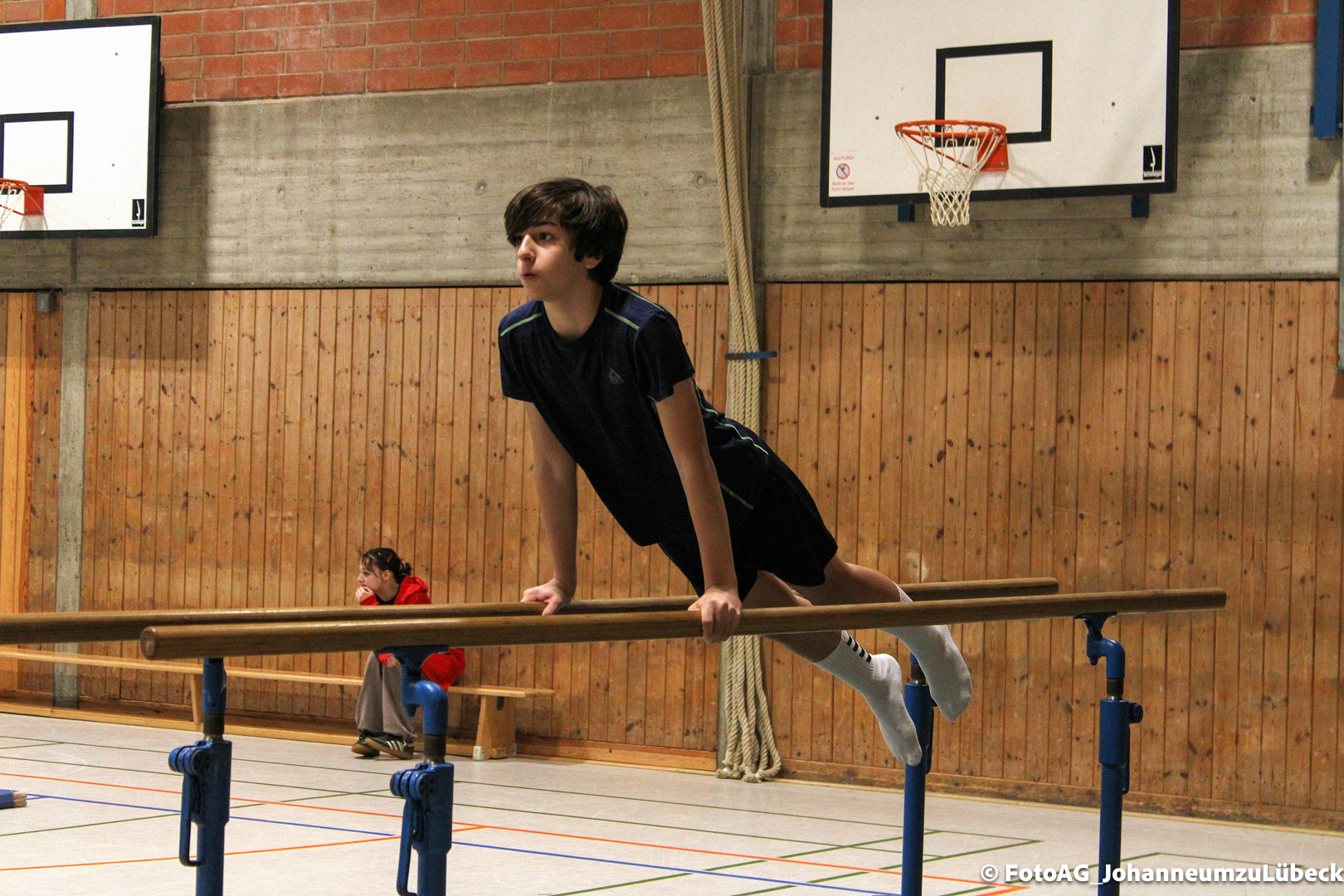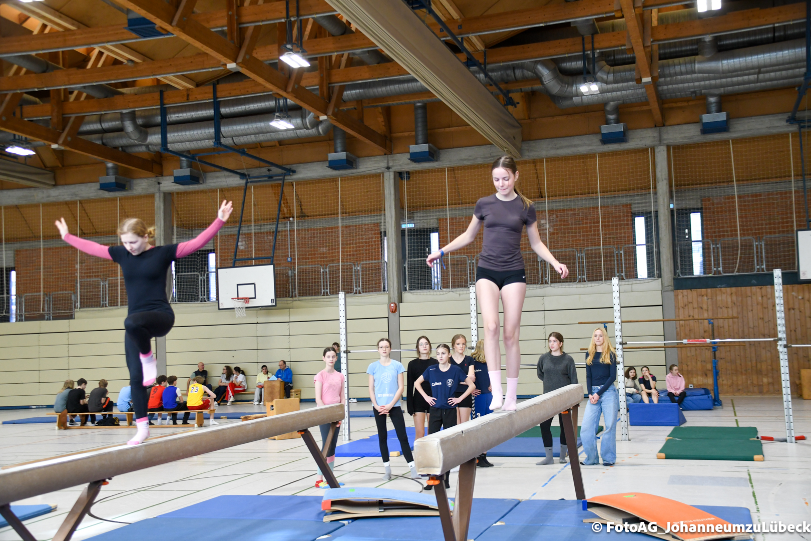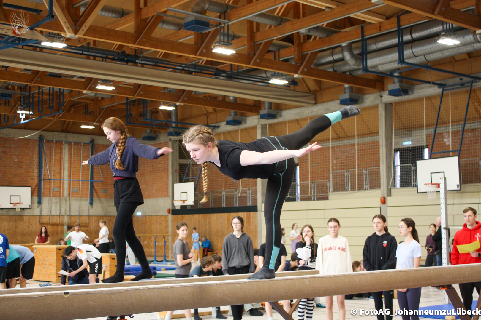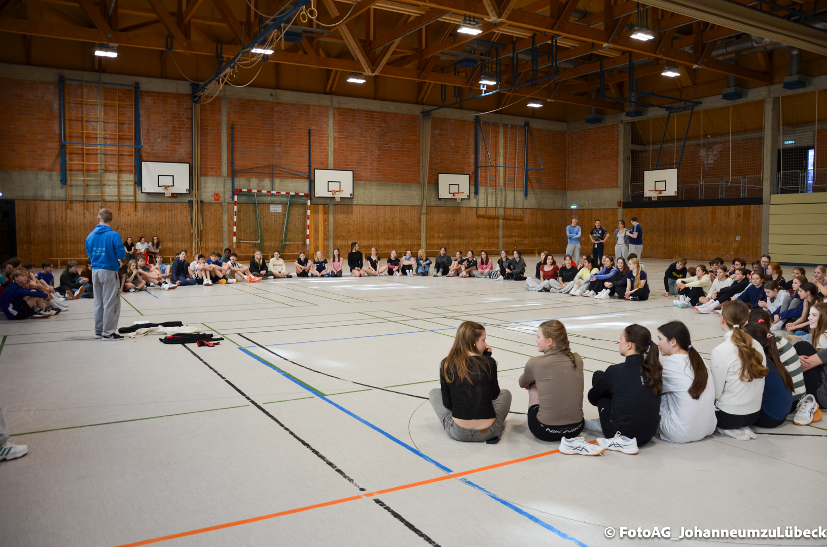 Gestartet hat alles mit einer Ansprache von Herrn Fromme, bevor wir klassenweise mit unseren Riegenführer:innen von Station zu Station geführt wurden. Nach dem jeweiligen Einturnen konnten wir dann den Lehrkräften vorführen, was wir zuvor in unseren Unterrichtsstunden geübt hatten.