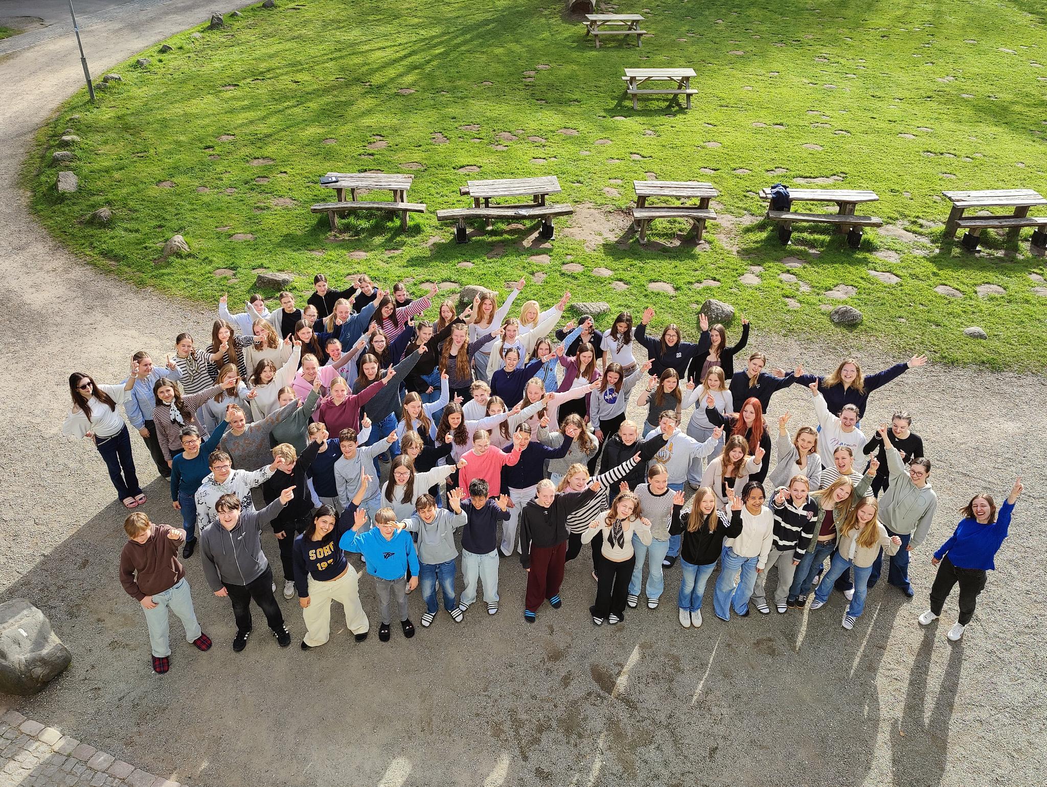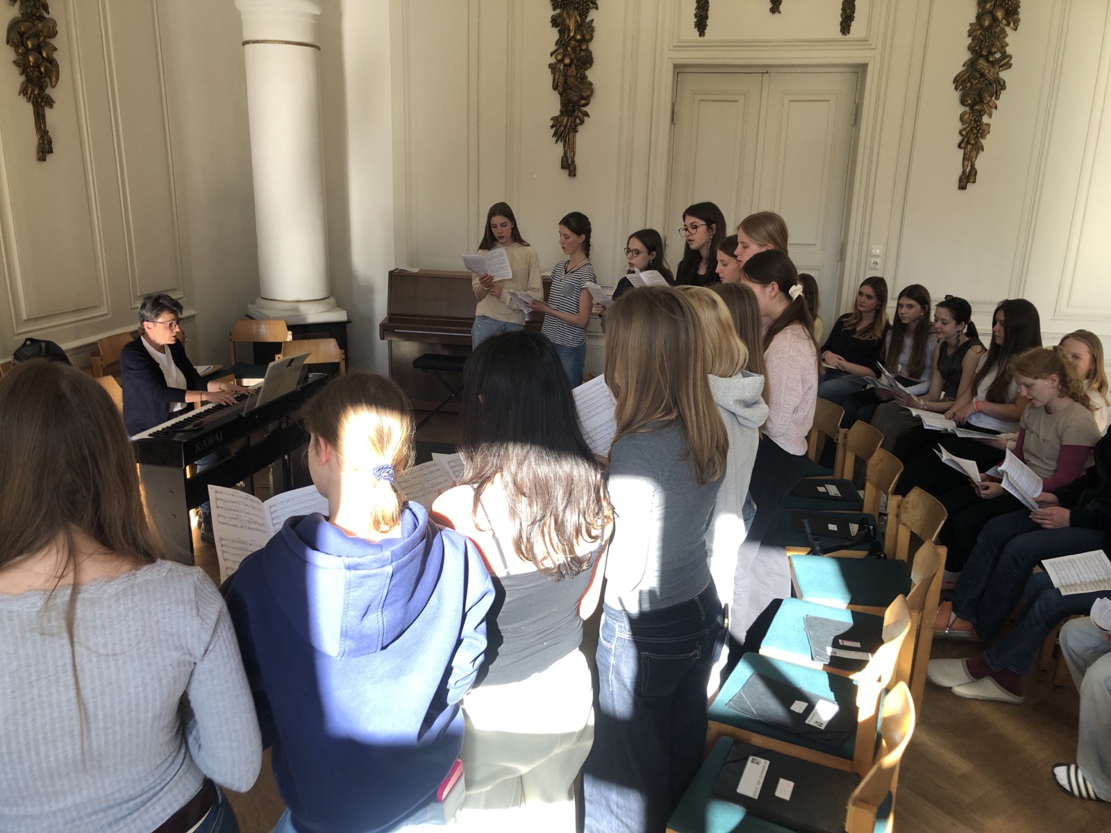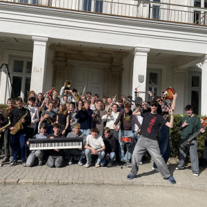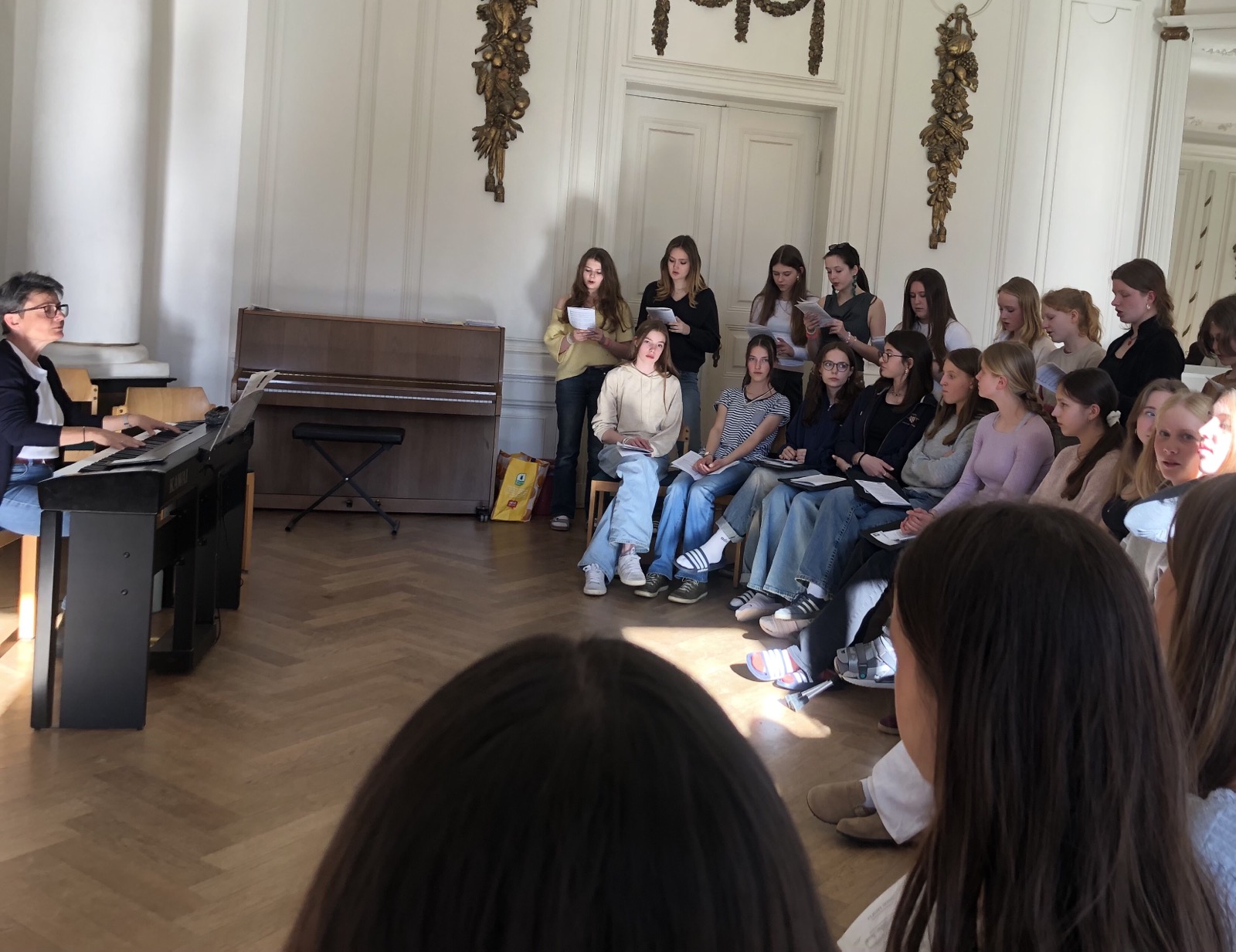 Nicht nur in den Proben des Schulchors, sondern überall wird gesungen! Die gute Stimmung ist am Mittwoch mit uns angereist und die gesamte Zeit geblieben. Auch Sonnenschein und 15 Grad begleiten uns durch die – unter anderem – Filmmusik, die vom Mittelstufenorchester und der ConcertBand gespielt wird.