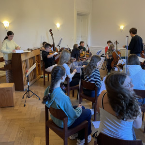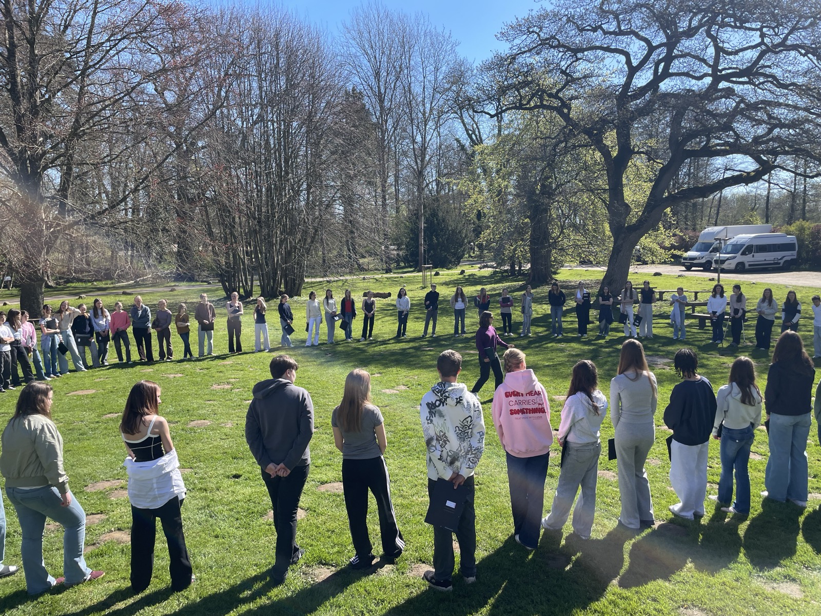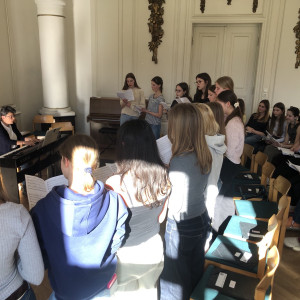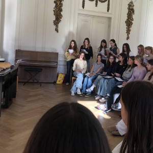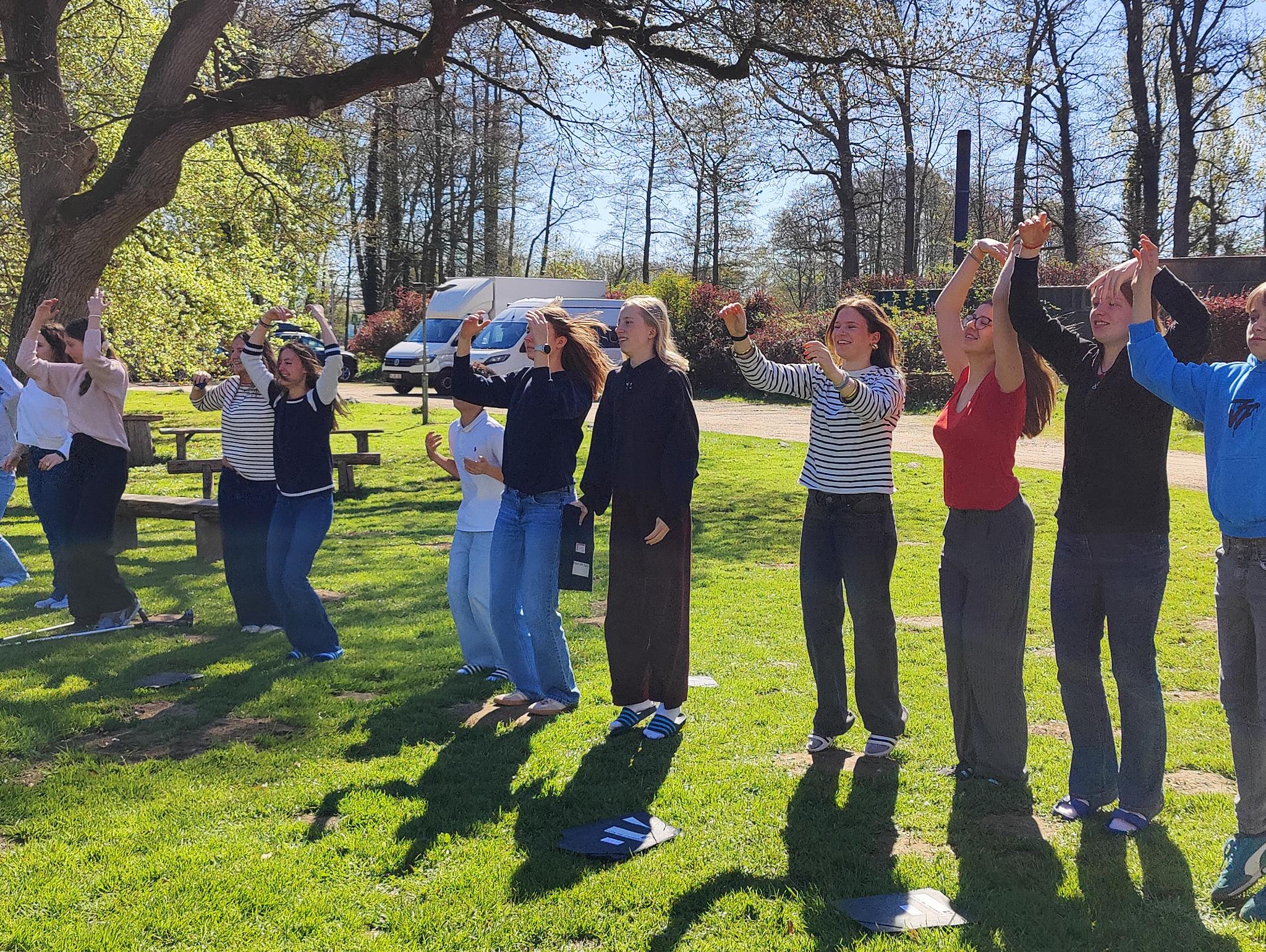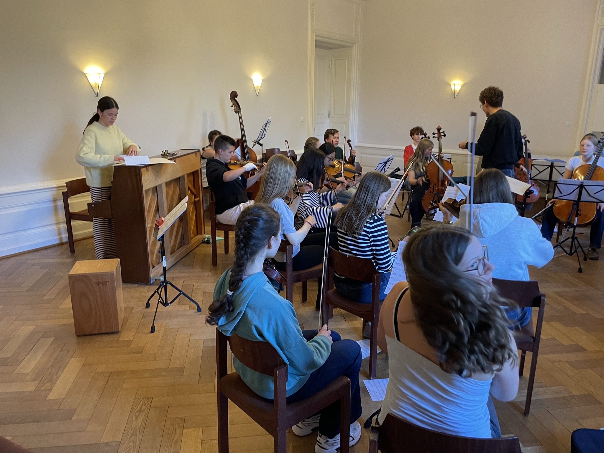 Nicht nur in den Proben des Schulchors, sondern überall wird gesungen! Die gute Stimmung ist am Mittwoch mit uns angereist und die gesamte Zeit geblieben. Auch Sonnenschein und 15 Grad begleiten uns durch die – unter anderem – Filmmusik, die vom Mittelstufenorchester und der ConcertBand gespielt wird.