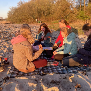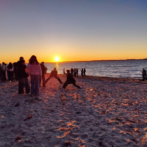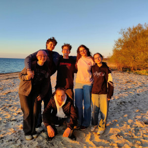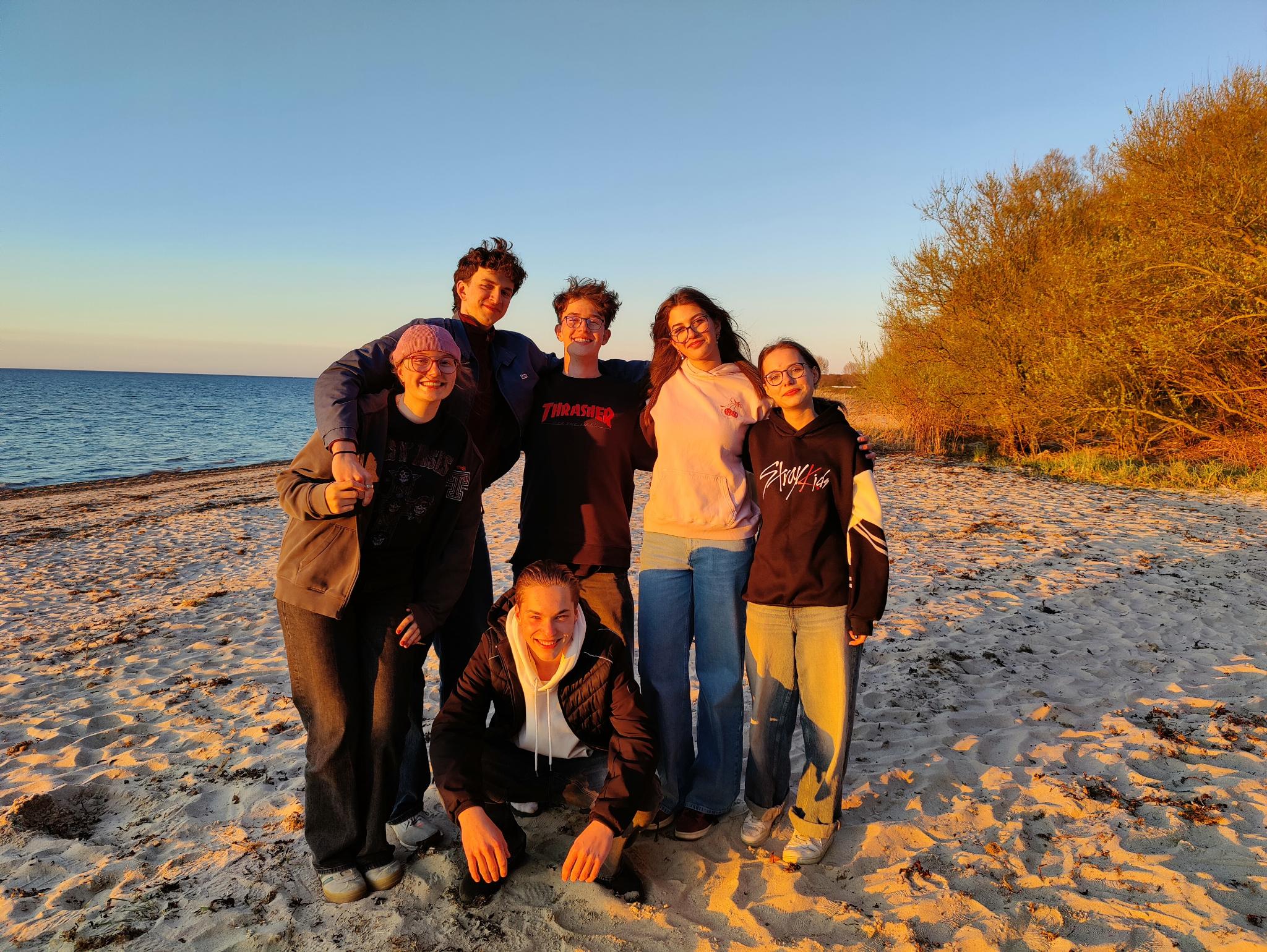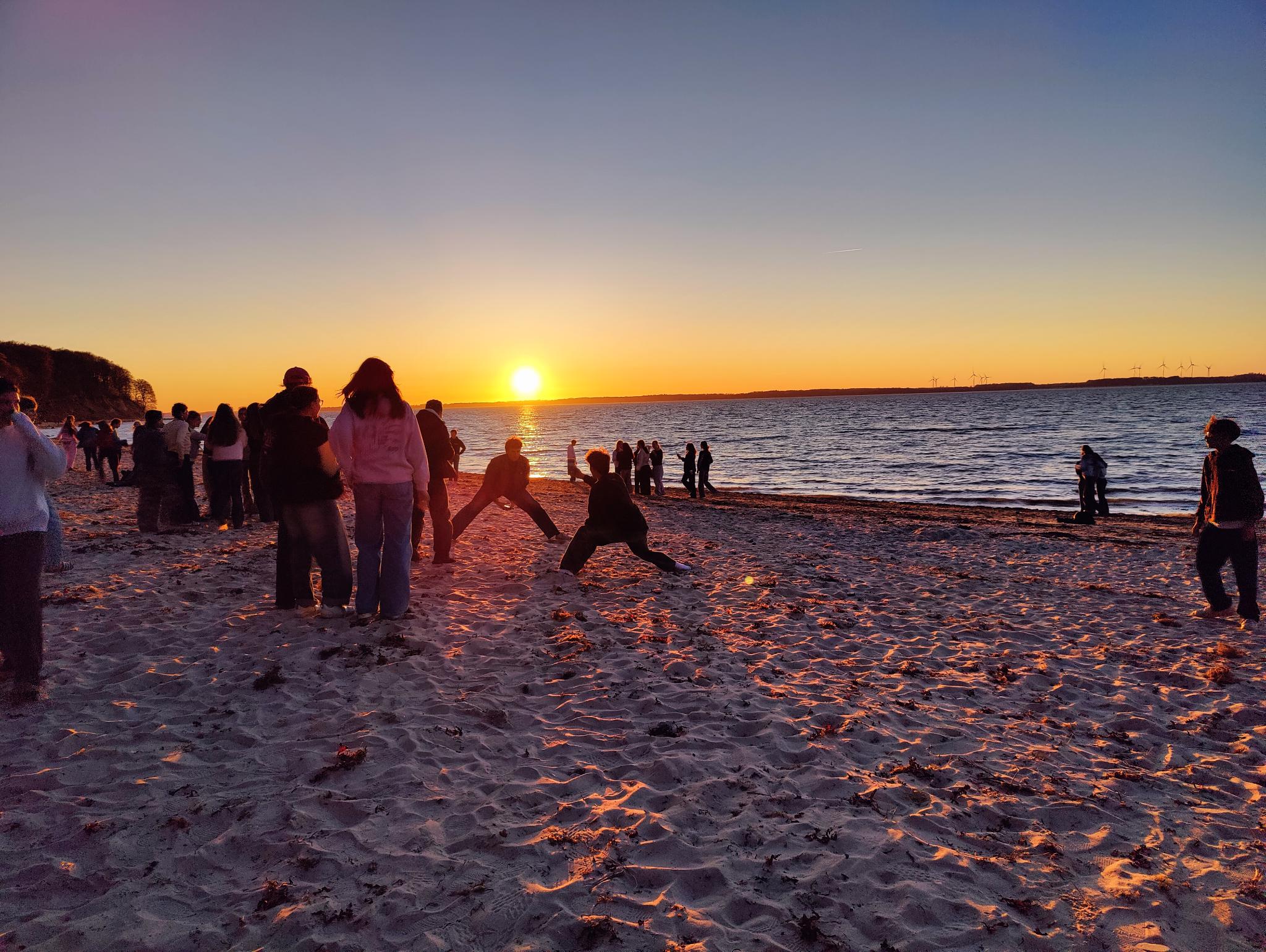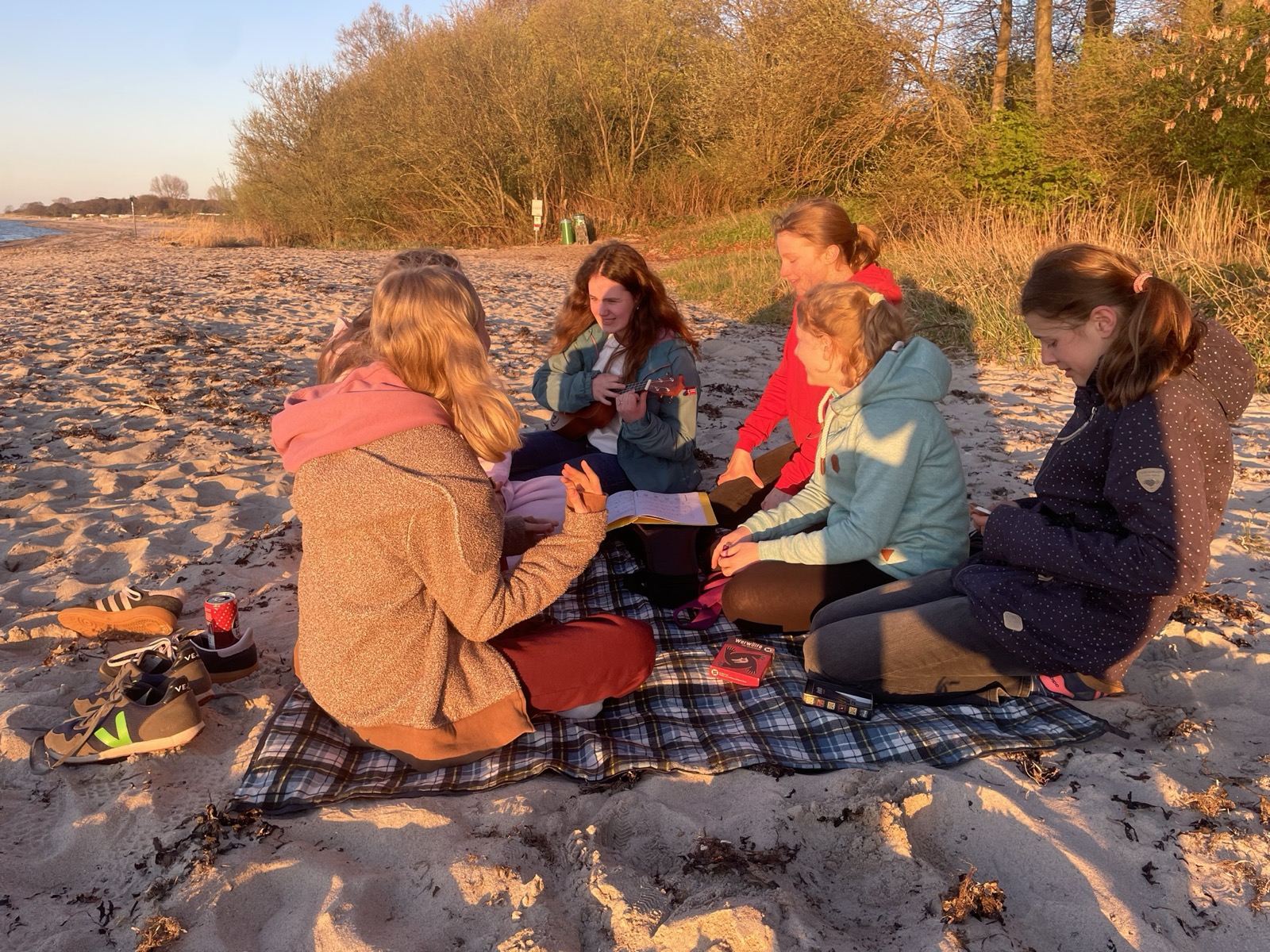 In den Pausen setzt man sich in die Sonne und spielt Skipbo oder spaziert zum Strand, der uns am ersten Abend einen wunderschönen Sonnenuntergang beschert hat. Die Tage vergehen langsam und deswegen fühlt es sich an, als hätten wir mehr Zeit zusammen mit der Musik und unseren Freundinnen und Freunden. Wir freuen uns schon auf die Konzerte!