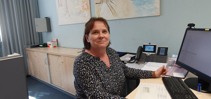 Ich bin Sachbearbeiterin im Schulbüro. Wir sind für An- und Abmeldungen der Schüler:innen da, sowohl bei Krankheiten als auch wenn sie sich neu anmelden wollen. Zusätzlich sind wir auch für den Haushalt da, das heißt wir kaufen eure Schulbücher, sowie Lernmaterial.