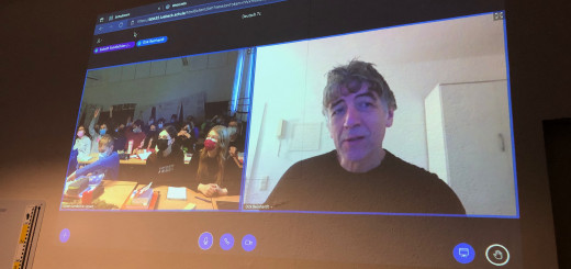 Wenn die pandemische Lage sogar Schulveranstaltungen schwierig werden lässt, ist Erfindungsgeist gefragt. So gab es für die Klasse 7c zwar keine Dichterlesung in der Aula, dafür kam der Jugendbuchautor Dirk Reinhardt direkt ins Klassenzimmer, digital zwar aus dem Münsterland und doch auf der Leinwand ganz nah.