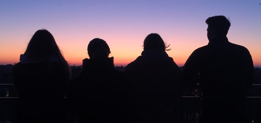 Vier Mitglieder des Kunstprofilkurses im Abiturjahrgang erwarten zu Beginn ihres Prüfungssemesters von der Astronomieplattform des Johanneums aus den nahenden Sonnenaufgang.